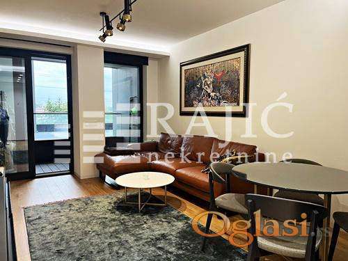 Tekst oglasa: Luksuzan stan u novoj zgradi u Sakura Parku. Prostorije: predsoblje, dnevni boravak sa trpezarijom, kuhinja, spavaća soba, kupatilo, terasa. Stan je kompletno opremljen novim nameštajem. Provizija agencije 50% |
