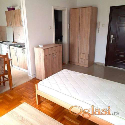 Tekst oglasa: <p>Predstavljamo Vam sjajnu garsonjeru u blizini Bulevara oslobođenja. Kompletno je opremljena lepim i kvalitetnim nameštajem i potrebnom belom tehnikom. Nalazi se na petom spratu u zgradi sa liftom. Orijentisana je ka mirnom dvorištu a prostrana terasa pruža dodatni komfor i idealna je za uživanje. Do Vašeg useljenja, stan će biti i sveže okrečen. Za više informacija, kontaktirajte naše agente.</p> |