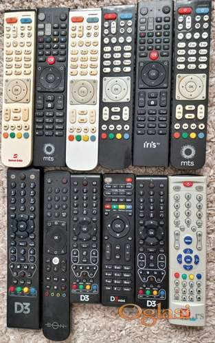 Tekst oglasa: <p>Daljinski za IPTV original MTS CRNI i D3 razni</p> <ol><li>Daljinski za IPTV original MTS daljinac CRNI Telekomov (850 din. po komadu)</li> <li>Daljinski D3 (499 din. po komadu)</li> </ol> |
