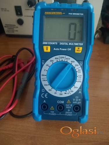 Tekst oglasa: <div> <div style="margin-right:29px;"> <p>Kop Digitalni multimetar CAT III 600V</p> <ul style="margin-left:18px;"><li>Дигитални мултиметар CAT III 600 V са бесконтактним тестером напона и тростепеним дисплејем, боја антрацит/жута</li> <li>Једнополни фазни тест са звучним алармом</li> <li>Осветљени дигитални дисплеј, са интегрисаном ЛЕД батеријском лампом</li> <li>Области примене: тест батерије, тест диоде - чување података - аутоматско искључивање</li> <li>Садржај пакета: тест кабл, 2 x AAA батерије (1,5 волти), упутство за употребу </li> </ul></div> </div> |
