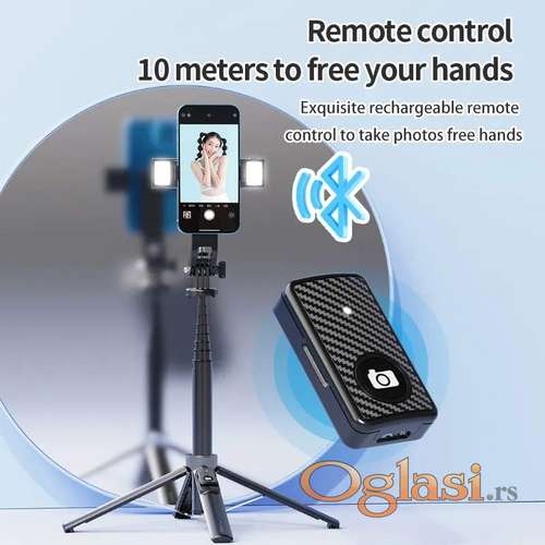 Tekst oglasa: <p>Bluetooth daljinski stativ sa dvostrukim svetlima za punjenje, svetlo ima tri boje (belo svetlo, prirodno svetlo, toplo svetlo), a temperatura svetlosti se može podesiti u 9 nivoa.</p> <p>Selfi štap je nadograđena verzija, kvadrapodi su stabilniji od tradicionalnog stativa za telefon, mini prenosivi, oslobađaju ruke da radite bilo šta.</p> <p>Postolje za stativ za telefon se može podesiti pod više uglova, snimanje je lako, može se koristiti za striming uživo, učenje na mreži, podučavanje, selfije, gledanje video zapisa, sastanke, snimanje vašeg kućnog života, veoma zgodno. daljenost daljinskog upravljača za selfi stativ 10 M, velika brzina povezivanja i niska cena energije, može se koristiti dugo vremena, baterija je zamenljiva, kompatibilna sa iPhone i Android pametnim telefonom. </p> <p><strong>Mogucnost licnog preuzimanja na Novom Beogradu ! ! </strong><br /><strong>Slanjem Brzom Postom! </strong></p> |