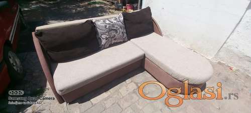 Tekst oglasa: <p>Ugaona garnitura 120 eu. fiksno.Dimenzije na slici u nastavku,ocuvana krem braon tamnija nego na slici jer je slikana na suncu.ima i sve od Polovnog Namestaja I nešto bele tehnike za sve slike na fb ukucate prodaja Polovnog Namestaja Zemun Beograd pa u opciju slike.Prevoz vas ili uz doplatu </p> |