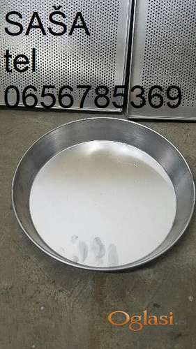 Tekst oglasa: <p>Aluminijumske tepsije za pečenje- burek pite ... fi28cm 390din fi 30cm 450din i fi 32cm 490din dimenzije su za vrh tepsija (cene za tepsije za 10 i više komada) NOVO</p> <p>od kvalitetnog debelog aluminijuma (NISU KINESKE I TURSKE ni od tankog aluminijuma koga seče nož) domaća proizvodnja .</p> <p>Aluminijumski PEKARSKI PLEHOVI 60 X 40 cm puni 60x40cm 1350din , šupljikasti 1390din 60x20cm 790din (cene su na 5 i više komada) </p> <p>NOVO od kvalitetnog debelog aluminijuma imamo i <br /> 60x40 za bagete 1590 din, <br /> kalupe za hleb sa 4 mesta šupljikaste 60x40cm 1690din,<br /> dublje za jufke i baklave </p> <p>slanje kurirskom službom OGRANIČENE KOLIČINE </p> <p>SAŠA tel 0656785369</p> |