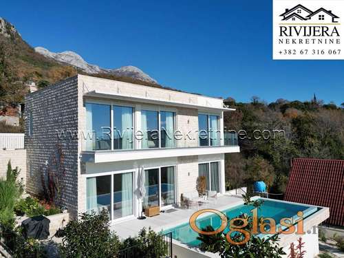 Tekst oglasa: <p>Luksuzna Vila sa pogledom na more Herceg Novi Podi. Novogradnja, odlican kvalitet gradnje, parking obezbjedjen. Povrsina Vile 260 m2, sastoji se od prizemlja 125 m2 (velika dnevna soba sa kuhinjom, kupatilo, spavaca soba sa svojim kupatilom, veseraj, prvi sprat 101 m2 sastoji se od tri spavace sobe, dva kupatila, hodnik, terasa, garaza od 16 m2. Povrsina dovrista oko kuce 540 m2 + bazen 40 m2 + podrum 30 m2. Odlican pogled na more. Udaljenost od mora, 3.5 km, od Herceg Novog, 4.5 km. Vila se prodaje opremljena, cijena: 740.000 eura</p> |