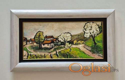 Tekst oglasa: <p>Ulje na lesonitu Malo selo, prelepo umetnicko delo. Slika je uramljena u jako lep ram, dimenzije slike sa ramom 50 x 30. Privatna kolekcija.</p> |