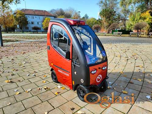 Tekst oglasa: <p>Elektricni skuter / kolica sa kabinom Mini crosser X1, 2020.godiste.,u jako lepom stanju je i potpuno ispravan,sve radi na njemu. U kabinu ima grejanje (Webasto). Ima rikverc,LED lampe-sva instalaciju da moze u saobracaju. Ne treba registrovati i vozi se bez dozvola. Baterije dobre,fabricki punjac. Brzina 10 km/h. Nosivost 175kg. Domet oko 20-25km, sa novim baterijama moze i vise.<br /> Mini crosser je grupe Medema, jedna ozbiljna kompanija, sa dugom istorijom, možda najbolja na tržištu.</p> |