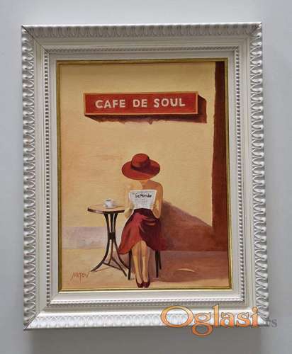 Tekst oglasa: <p>Ulje na platnu Dama, kafa i novine. Prelepo umetnicko delo. Slika je uramljena u jako lep ram, dimenzije slike sa ramom 53 x 43. Privatna kolekcija.</p> |