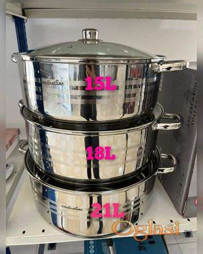 Tekst oglasa: <p><strong>Zapremine šerpi:</strong></p> <ul><li>21 lit – Savršena za pripremu većih količina hrane ili za kuvanje jela za veće društvo.</li> <li>18 lit – Idealna za kuvanje srednje velikih obroka ili variva.</li> <li>15 lit – Prikladna za manje obroke, sosove i priloge.</li> </ul> |