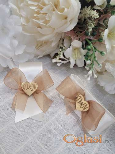 Tekst oglasa: <ul><li>Cvetovi za kićenje svatova</li> <li>Bež traka, braon organdin i srce na kome graviramo šta god poželite</li> <li>Kombinaciju boja i detalja možemo menjati</li> <li>Rever - 40 dinara</li> <li>Narukvica - 45 dinara</li> <li>Samolepljiva traka i lastiš za narukvicu , kao i graviranje, uključeni su u cenu</li> <li>Vreme izrade po dogovoru</li> <li>Ako su cvetići jako hitni, izlazimo u susret</li> <li>Za više informacija kontaktirajte nas pozivom na broj, porukom ili putem Viber-a</li> </ul> |