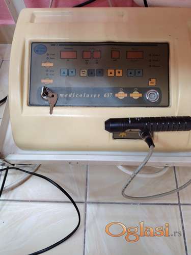 Tekst oglasa: <p>Ispravan aparat za laser terapiju firme electronic design. Sve radi, samo dugme na sondi ne pali odmah, pa ga podešavamo na aparatu</p> |