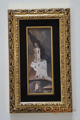 Tekst oglasa: <p>Ulje na platnu Ostrog, prelepo umetnicko delo. Slika je uramljena u jako lep ram, dimenzije slike sa ramom 46 x 28. Privatna kolekcija.</p> |