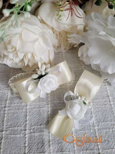 Tekst oglasa: <ul><li>Cvetići za kićenje svatova</li> <li>Bež satenska traka, bela mašnica, bele bobice i ružica</li> <li>Po Vašoj želji možemo menjati i kombinovati boje i detalje</li> <li>Rever - 27 dinara</li> <li>Narukvica - 32 dinara</li> <li>Samolepljiva traka, lastiš za narukvicu uključeni su u cenu</li> <li>Vreme izrade po dogovoru</li> <li>Ukoliko su cvetići jako hitni, izlazimo u susret</li> <li>Za više informacija kontaktirajte nas putem poziva na broj, porukom ili putem Viber-a</li> </ul> |