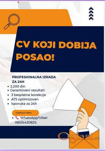Tekst oglasa: <div> <div>CV KOJI GARANTOVANO DOBIJA POSAO! Profesionalna izrada za 24h ZAŠTO VАŠ CV NE RADI? <ul><li>89% CV-jeva se odbacuje za manje od 10 sekundi</li> <li>HR prima 200+ CV-jeva po oglasu</li> <li>Vaš CV mora da PRODJE ATS sisteme</li> </ul> MOJE REŠENJE - CV KOJI SE PAMTI! USLUGE I CENE: <p> <strong>PROFESIONALNI CV</strong> - 2.200 din<br /> <strong>MOTIVACIONO PISMO</strong> - 1.500 din<br /> <strong>PORTFOLIO DOKUMENT</strong> - 3.800 din<br /> <strong>POSLOVNA BIOGRAFIJA</strong> - 1.200 din</p> MEGA PAKET "NOVA KARIJERA" <p><strong>CV + Motivaciono pismo + Portfolio</strong><br /> 7.500 din- <strong>SAMO 5.900 din! </strong></p> ŠTA DOBIJATE: <p>CV optimizovan za ATS sisteme<br /> Ključne reči za vašu oblast<br /> Dizajn koji se izdvaja od mase<br /> 3 BESPLATNE korekcije<br /> Isporuka za 24-48h<br /> 100% originalan sadržaj</p> <p> </p> O MENI: <ul><li>Stručnjak za zaštitu na radu i životnu sredinu</li> <li>Specijalizovana za profesionalno pisanje</li> <li>Iskustvo sa multinacionalnim kompanijama</li> </ul> KONTAKT: <ul><li><strong>WhatsApp/Viber</strong>: 060/4420825</li> <li><strong>Email</strong>: sanjastankov5@gmail. com</li> <li><strong>Odgovaram istog dana! </strong></li> </ul> KAKO FUNKCIONIŠE: <ol><li>Pošaljete mi vaše podatke</li> <li>Akontacija 50% (1.100 din za CV)</li> <li>Dobijate gotov CV za 24h</li> <li>Plaćate ostatak kad gotovo</li> </ol><p><strong> HITNO: Akcija važi samo do kraja meseca! </strong><br /><strong>Ne čekajte - vaši konkurenti već imaju profesionalne CV-jeve! </strong></p> <p><em>Lokacija: Srbija (online saradnja)</em></p> </div> </div> <div> </div> <div> <div> </div> </div> |