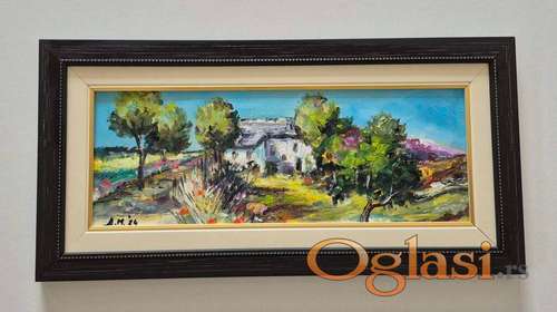 Tekst oglasa: <p>Ulje na platnu Mediteranska kucica, prelepo umetnicko delo. Slika je uramljena u jako lep ram, dimenzije slike sa ramom 50 x 25. Privatna kolekcija.</p> |