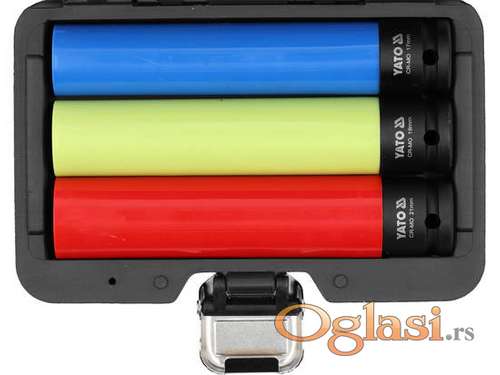 Tekst oglasa: <p> </p> <p>Set gedora za aluminijumske felne 17 19 21 mm <br /> Set nasadnih ključeva za aluminijumske felne 17, 19 i 21 mm 150 mm</p> <p>gedora su kromirane u 3 boje, što olakšava razlikovanje veličina.</p> <p>Oni takođe imaju zaštitu kako bi oslobodili odvrnuti čep i zavrtanj.</p> <p>rad sa udarnim ključem 1/2 "<br /> dužina gedora - 150 mm</p> <p>parametri</p> <p>Tip gedora : Hekagonal</p> <p>Veličina poklopca : 17,19,21 mm</p> <p>Material: CrMo SCM-440</p> <p>Broj artikala : 3 kom</p> <p>Veličina 1/2<br /> Novo i ne korišćeno</p> <p> </p> <p>Ukoliko zelite da porucite<br /> 1. Ime i prezime<br /> 2. Ulica i broj<br /> 3. Postanski broj mesto<br /> 4. Kontakt telefon</p> |