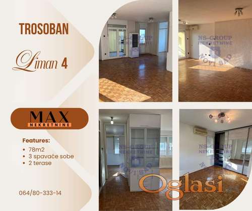 Tekst oglasa: <p>Na prodaju prostran i svetao stan na jednoj od najtraženijih lokacija u Novom Sadu - Liman 4. Stan je renoviran, dvostrano orijentisan sa pogledom na Frusku Goru. Stan se sastoji od dve spavaće sobe, prostran dnevni boravak sa trpezarijom, odvojena kuhinja sa ostavom, kupatilo i dodatni wc. Stan poseduje i dve terase. Stan se prodaje sa svim nameštajem i uredjajima kao na slikama - tri klime, ormari i kuhinja. Stan se nalazi u blizini svega - škole, vrtića, marketa, stanica gradskog prevoza... Stan pruža idealan balans komfora, funkcionalnosti i odlične povezanosti sa svim delovima grada. Za više informacija i dogovor o razgledanju, pozovite!</p> |