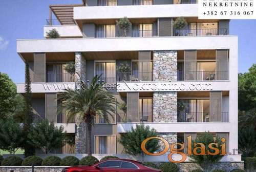 Tekst oglasa: <p>Prodaje se dvosoban stan povrsine 59m2, na drugom spratu stambenog objekta u izgradnji, lociran u naselju Pod Kuk, Tivat.</p> <p>Objekat je pozicioniran na jednoj od najljepsih lokacija u Tivtu, na svega 800 metara od mora, dok je od centra grada udaljen samo 1 kilometar. Koncipiran je tako da je svojom duzom stranom okrenut ka moru, da bi svi stanovi imali otvoren pogled na grad i na more.</p> <p>Objekat svojom arhitekturom i formom prati savremeni nacin izgradnje i finalne obrade stambenih objekata. Struktura stanova u objektu omogucava objedinjavanje vise stambenih jedinica u jednu.</p> <p>Parterno urednjenje objekta ce biti ozelenjeno sadnicama visokog i niskog rastinja a predvidjena je i izgradnja bazena za korisnike ovog objekta.</p> <p>Struktura jednosobnog stana u prizemlju:</p> <ul> <li>Ulazni hodnik: 7.28m2</li> <li>Kupatilo: 3.59m2</li> <li>Spavaca soba 1: 8.26 m2</li> <li>Spavaca soba 2: 9.87 m2</li> <li>Veseraj: 1.74m2</li> <li>Toalet: 2.17m2</li> <li>Dnevni boravak sa kuhinjom: 22.85m2</li> <li>Terasa: 4.81m2</li> </ul> <p>Ukupno: 59m2</p> <p>Moguce je kupiti garazno mjesto po cijeni od 15.000 Eur.</p> <p>Cijena: 220.000 Eur (cijena sa popustom, za koju je potrebno uplatiti 90% po potpisivanju ugovora)</p> |