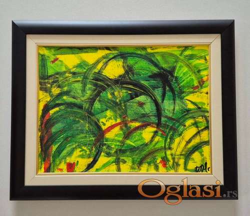 Tekst oglasa: <p>Slika Apstrakcija 444, prelepo umetnicko delo. Tehnika akril na platnu. Dimenzije slike sa ramom 52 x 42. Privatna kolekcija.</p> |