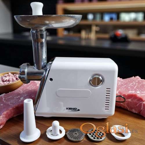 Tekst oglasa: <p>Električna mašina KENO GERMANY, GARANCIJA 25 MESECI, za mlevenje mesa sa tri šajbne a ima i top za kobasice . Mašina melje i paradajz pomoću separatora koji odvaja posebno ljusku ( koru), a posebno odvaja sok tako da je možete koristiti tokom cele godine. Jačine je 1200 w što omogućava da mašina može dugo da radi bez pregrevanja i najjača je kod nas na tržištu.<br /> Visoko kvalitetna mašina SA UPUTSTVOM NA SRPSKOM I GARANCIJOM 25 MESECI. Veleprodaja nam isporučuje nekada u crvenoj a nekada u crnoj boji. Potpuno novo. Šaljem brzom poštom, a moguće je i lično preuzimanje u Novom Sadu.</p> <p>Akcija traje dok ima zaliha!</p> |