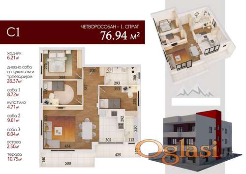 Tekst oglasa: <p>Predstavljamo Vam odličan četvorosoban stan u izgradnji na lokacija koja postaje sve atraktivnija za život. Ulica paralelna sa Novosadskim putem, nije zavučena - odmah kod kružnog toka u Veterniku. Strukturu stana čine: dnevna soba sa kuhinjom i trpezarijom, tri spavaće sobe, kupatilo, ostava i terasa. Kvalitet gradnje i opreme je izuzetan ( 25cm klimablok, tarket I klase, italijanksa keramika, plafoni veći od standardnih (2.85m)). <br /> U blizini autobuska stanica, market, pijaca, škola, vrtić, kao i sve ostalo što je neophodno za svakodnevni život...<br /> Grejanje je podno - Na gasne kotlove.<br /> Za kupce prve nekretnine postoji mogućnost povrata PDV-a.<br /> Rok završetka - Novembar 2025. godine! <br /> Za sve dodatne informacije, pozovite!<br /> Sky 021 Nekretnine 061/146-8-196 ID: 526</p> |
