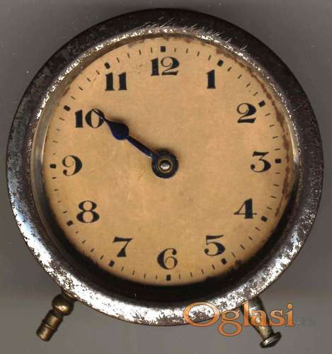Tekst oglasa: <p>Nema nikakvu oznaku ni na kućištu, ni na mehanizmu; Ø 6x4 cm; limeno kućište, prilično zarđalo; arapski cifarnlk; ne radi; nedostaju jedna kazaljka, ključ za navijanje i krunica za podešavanje; opruga je, verovato, pukla.</p> |