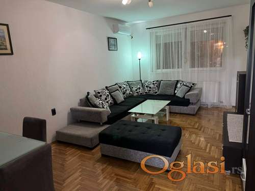 Tekst oglasa: <p>Izdajem kompletno opremljen dvosoban stan na Bulevaru Evrope.</p> <p>Savršen raspored, 45m2, dvostrano orjentisan.<br /> Privatno dvorište sa parkingom i dečijim igralištem.<br /> Grejanje na gas, izuzetno povoljno.</p> <p>Kompletna bela tehnika:<br /> - veliki kombinovani frižider<br /> - šporet sa ravnom pločom<br /> - mikrotalasna<br /> - mašina za pranje suđa<br /> - mašina za pranje i sušenje veša<br /> - 2 televizora<br /> - klima</p> |