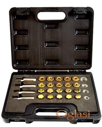 Tekst oglasa: <p>Set za popravku navoja za karter ulja 64 kom</p> <p>64-delni komplet za popravak čepova za ulje.</p> <p>Sadržaj kompleta</p> <p>4 slavine: M13 x 1,5 mm, M15 x 1,5 mm, M17 x 1,5 mm, M20 x 1,5 mm</p> <p>5 x utikač korita za ulje M13 x 1,5 mm, spoljni šesterokut 17 mm</p> <p>5 x utikač korita za ulje M15 x 1,5 mm, spoljni šesterokut 19 mm</p> <p>5 x utikač korita za ulje M17 x 1,5 mm, unutrašnji šesterokut 8 mm</p> <p>5 x utikač korita za ulje M20 x 1,5 mm, unutrašnji šesterokut 10 mm</p> <p>50 x aluminijumski zaptivni prsten, svaki po 10 komada, prečnika: 13, 15, 17, 20 mm</p> <p>Novo i ne korišćeno<br /> </p> <p>Ukoliko zelite da porucite, posaljite poruku preko SMS PORUKE ili VIBERA<br /> 1. Ime i prezime<br /> 2. Ulica i broj<br /> 3. Postanski broj mesto<br /> 4. Kontakt telefon</p> <p>Ili pozovite na broj telefona<br /> 061/191-4635</p> |