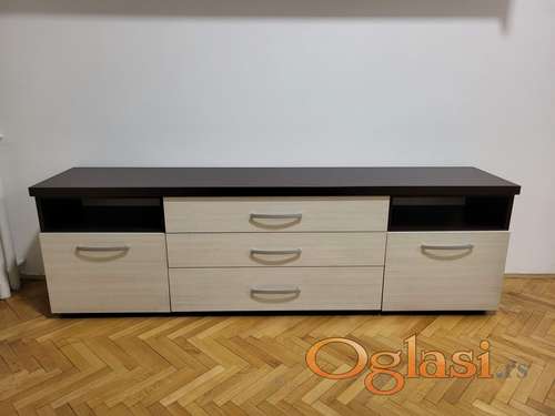 Tekst oglasa: <p>100€ kao nova.</p> <p>Dimenzije: (visina x širina x dubina)</p> <p>60 x 190 x 40cm</p> <p>https://hrast.rs/proizvodi/maki-komoda-b/</p> |
