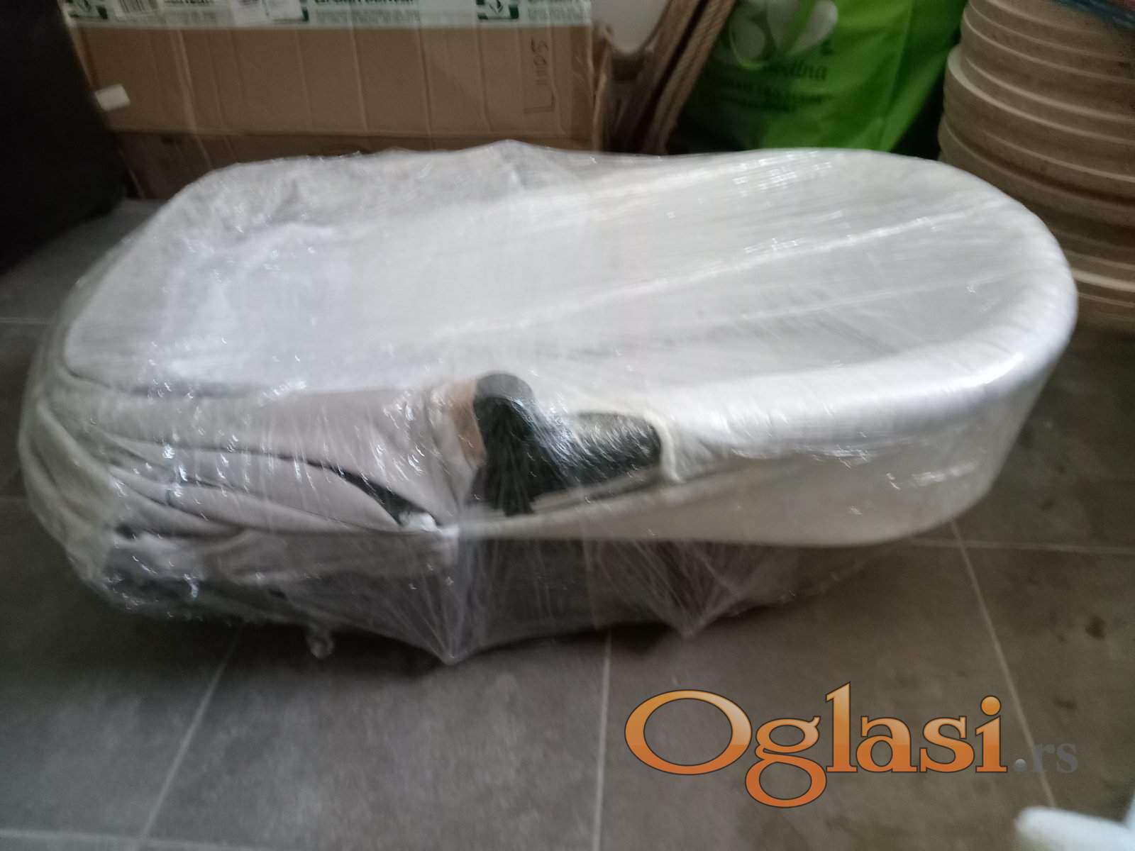 Materijal rama: alunminijum. Lako se skuda i pere u mašini. Sedište može da se okrene i ka napred i ka nazad.