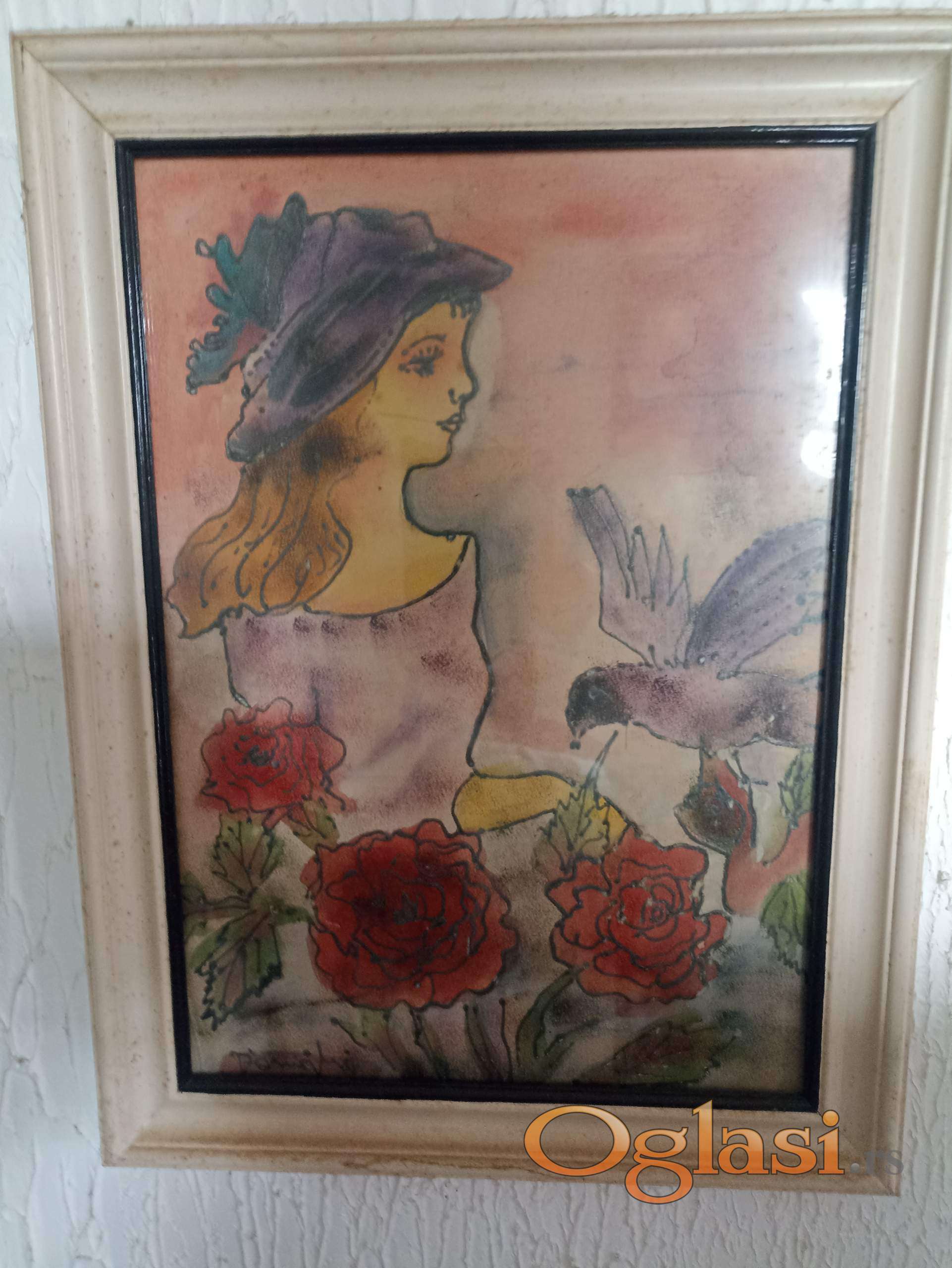 Slika - akvarel, dimenzije 35 cm x 46 cm sa ramom, ustaljena.