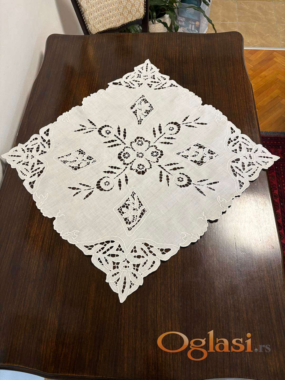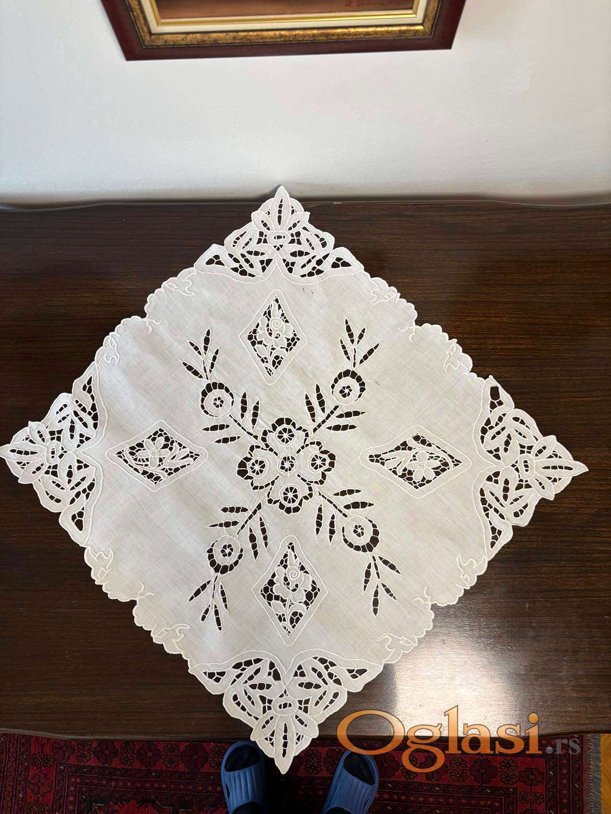 Šustikla, beli vez, antikvitet, 63x61cm, prodaja Novi Sad