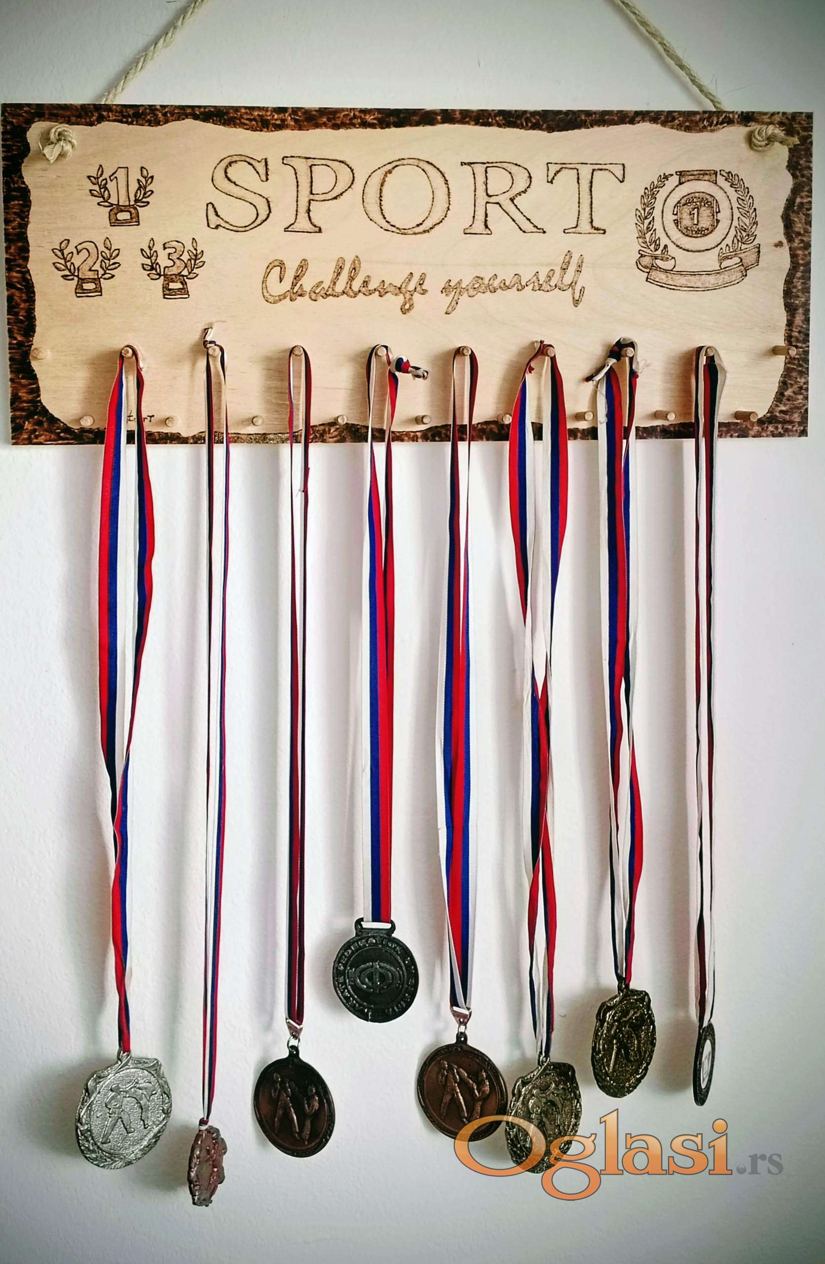 Personalizovani drveni držači za medalje sa sportskim motivima