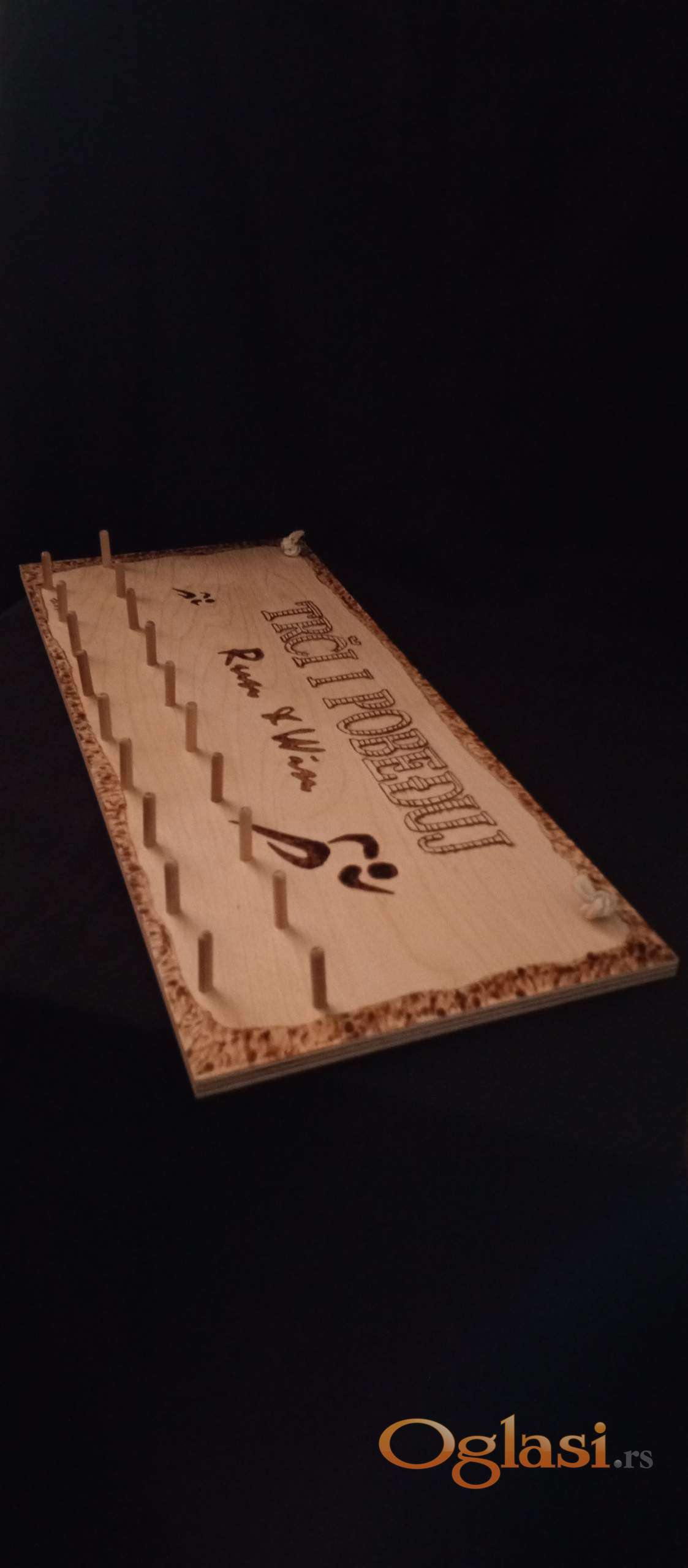 Ručni rad, graviranje tehnikom pirografije na drvetu (šperploča breze 9mm debljine, dimenzije 49x20cm) sa zaštitnim slojem laka