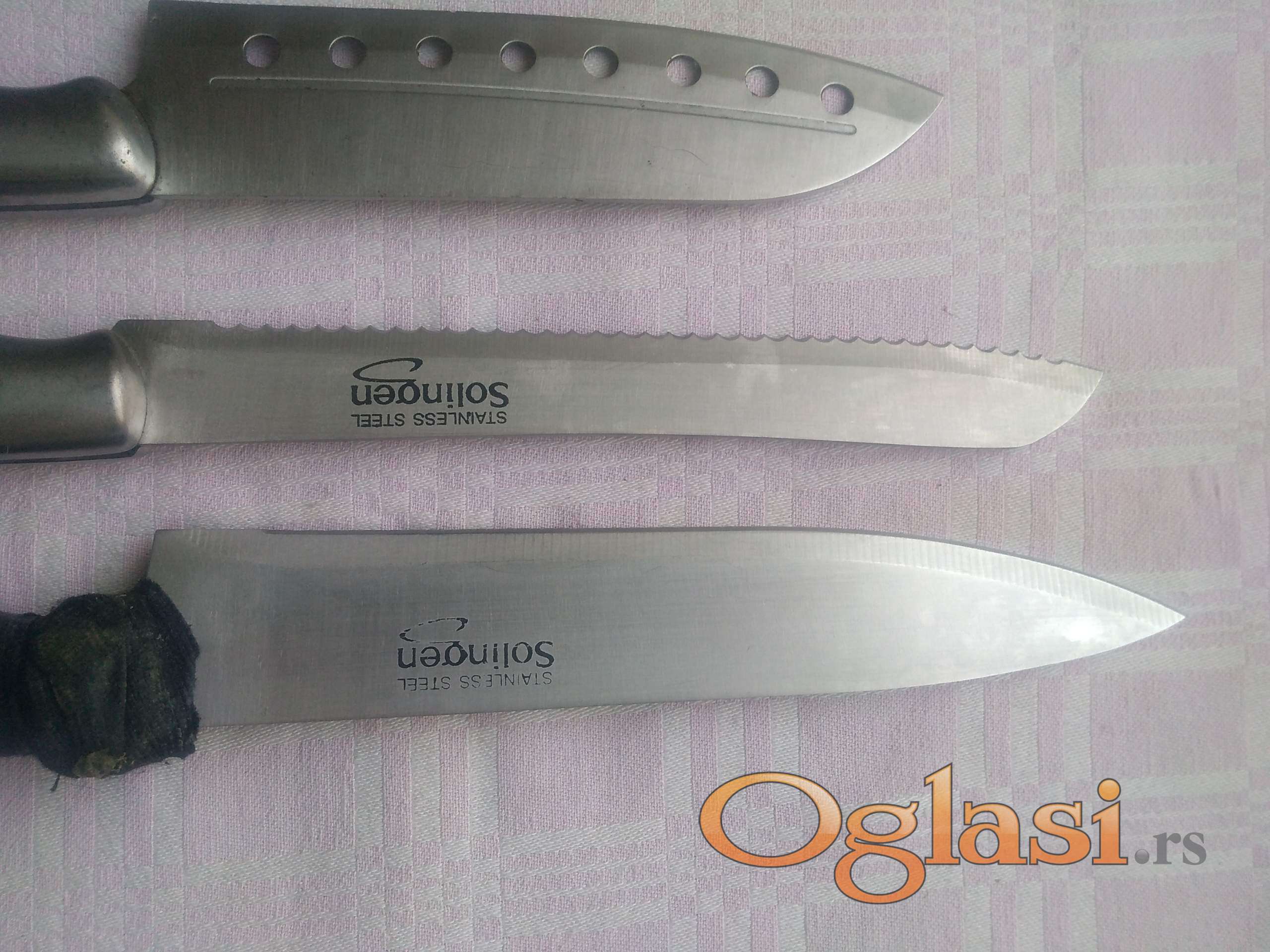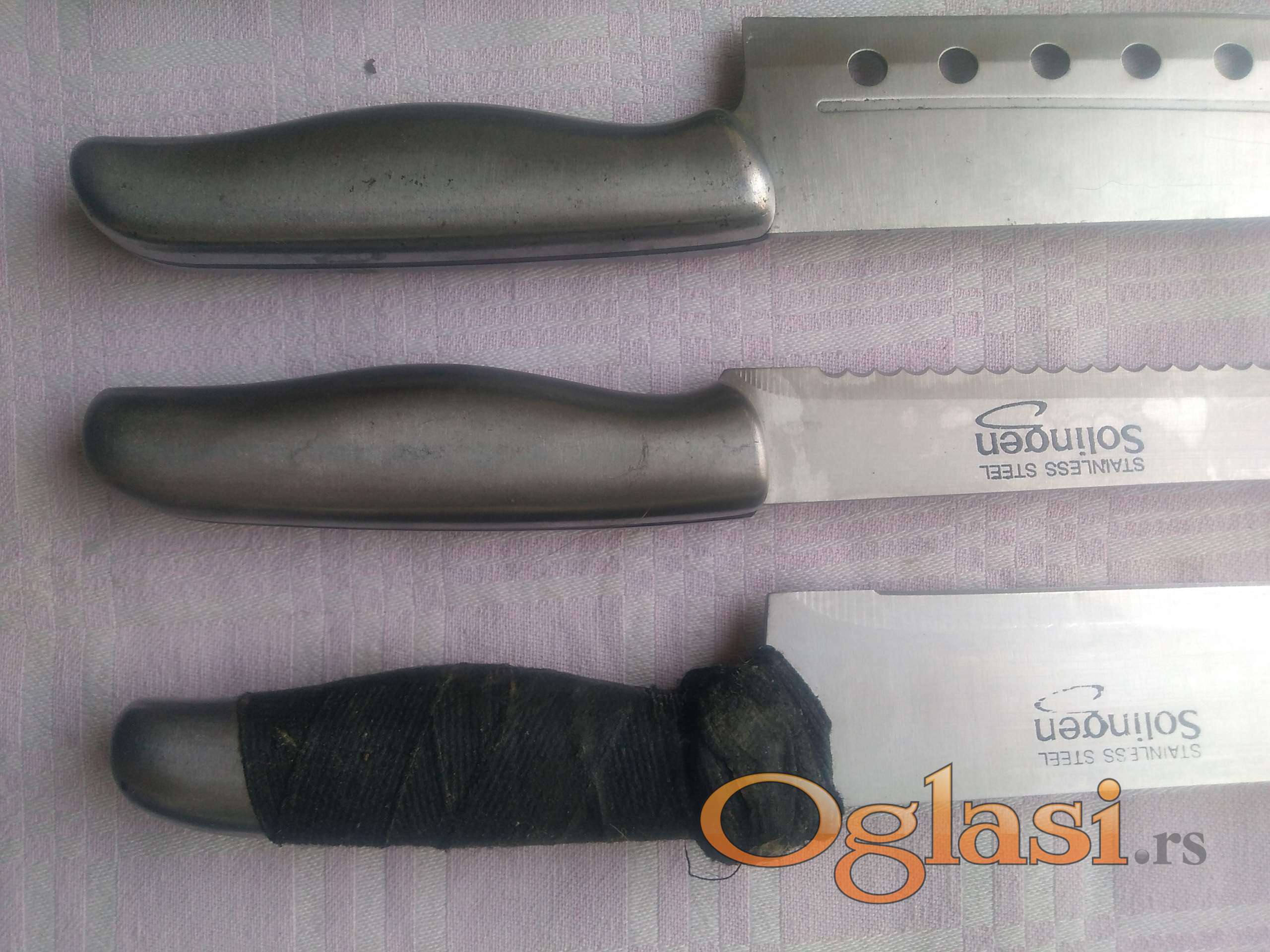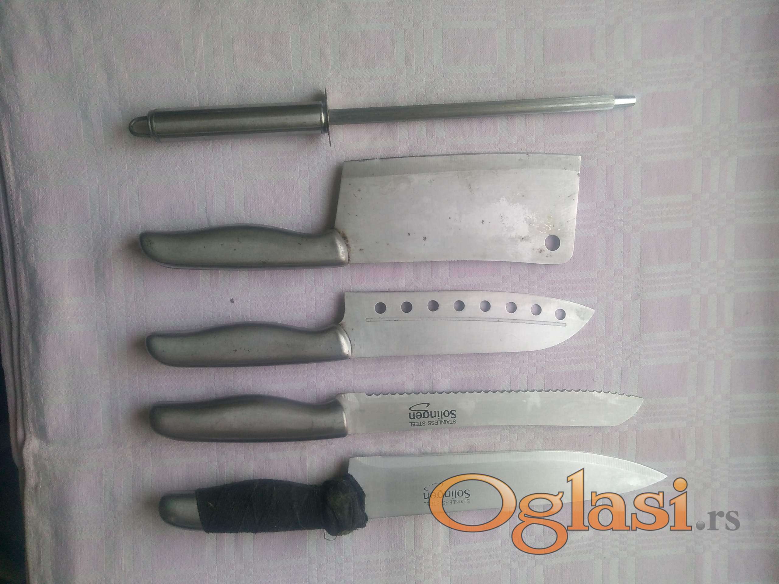 solingen . masat - oštrač , satara i tri noža . na velikom nožu se rastavila ručka i treba je srediti .