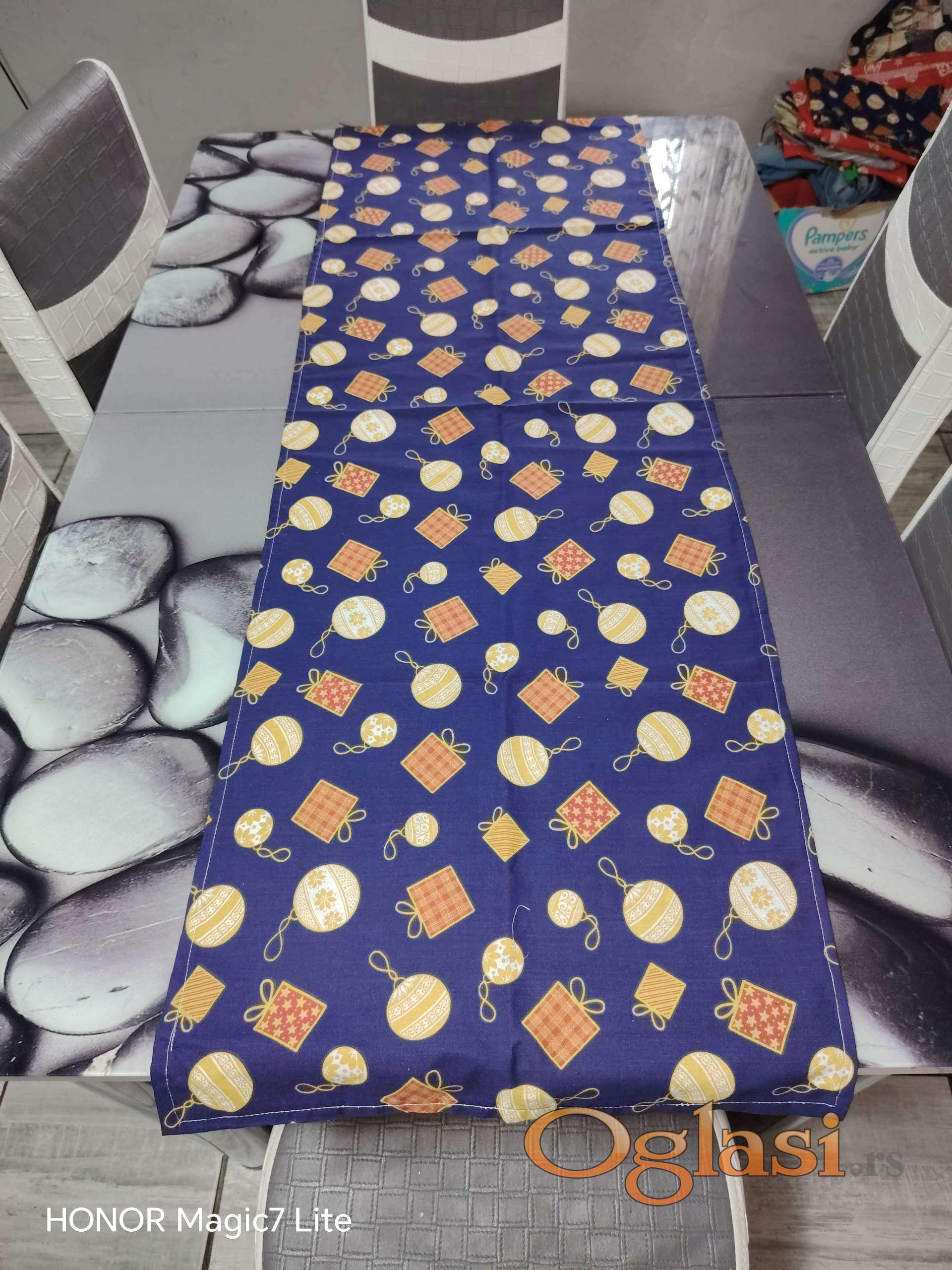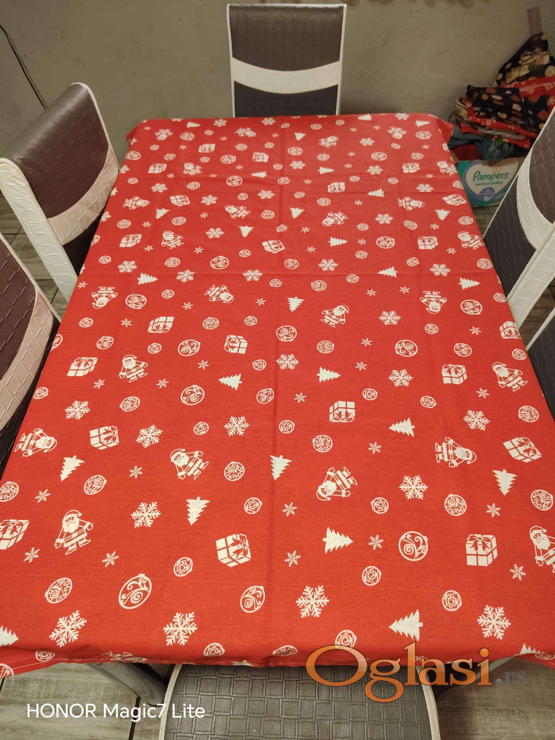 Rucno radjeni stolnjaci i nadstolnjaci sa novogodisnjim dezenom. Unesite praznicno raspolozenje u Vas dom. Nadstolnjaci su 300din/kom, stolnjaci 500din/kom.