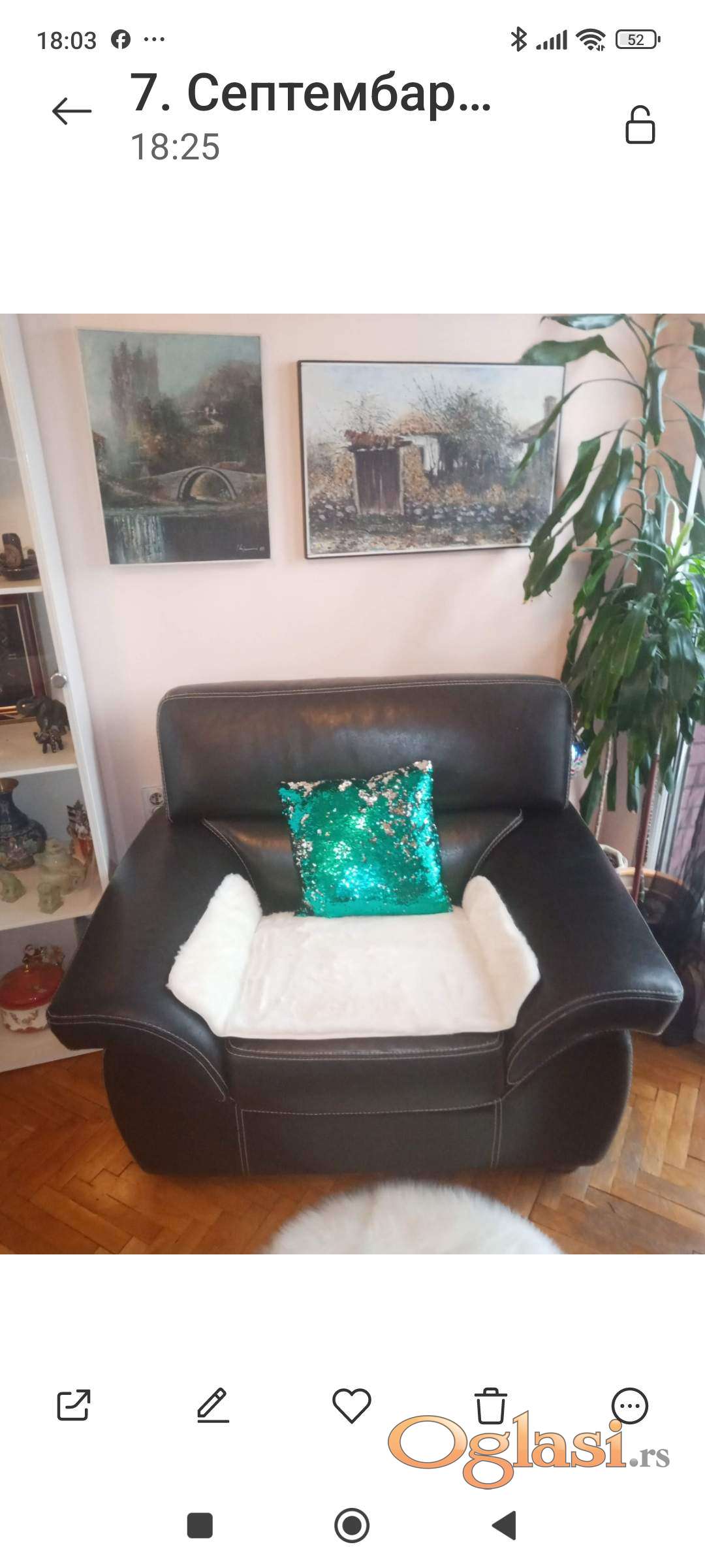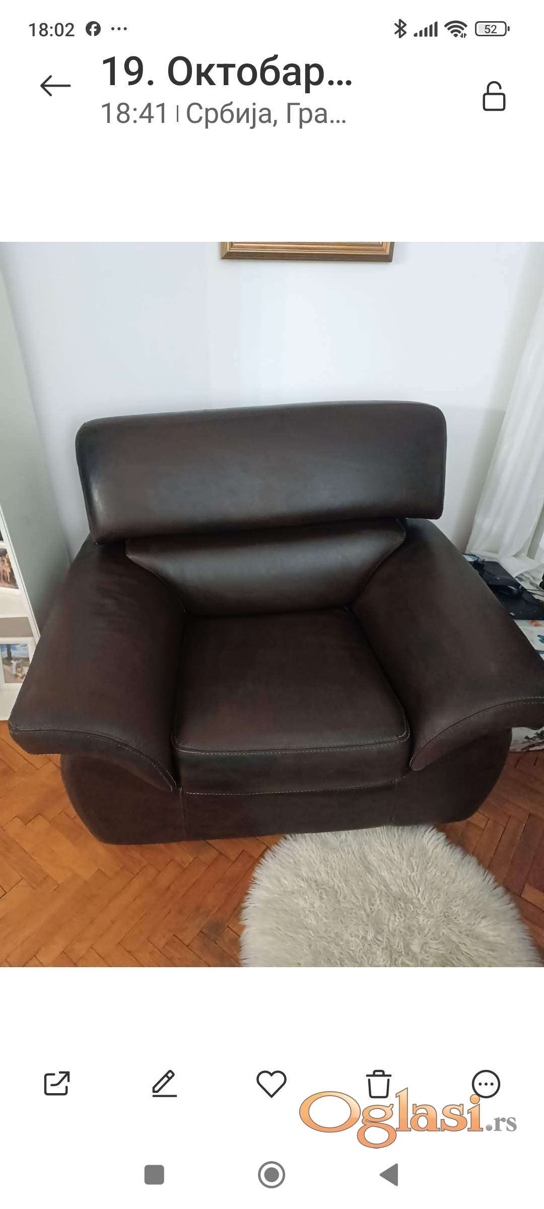 Prodajem izuzetno ocuvanu koznu garnituru u kompletu trosed, dvosed i fotelja. Proizvodjac Simpo. Garnitura je od prirodne govedje koze, udobna, cvrsta i kvalitetno izradjena. Nema nikakvih ostecenja, samo minimalni tragovi koriscenja. Trosed poseduje mehanizam za razvlacenje. Pozvati na broj 0631033888.