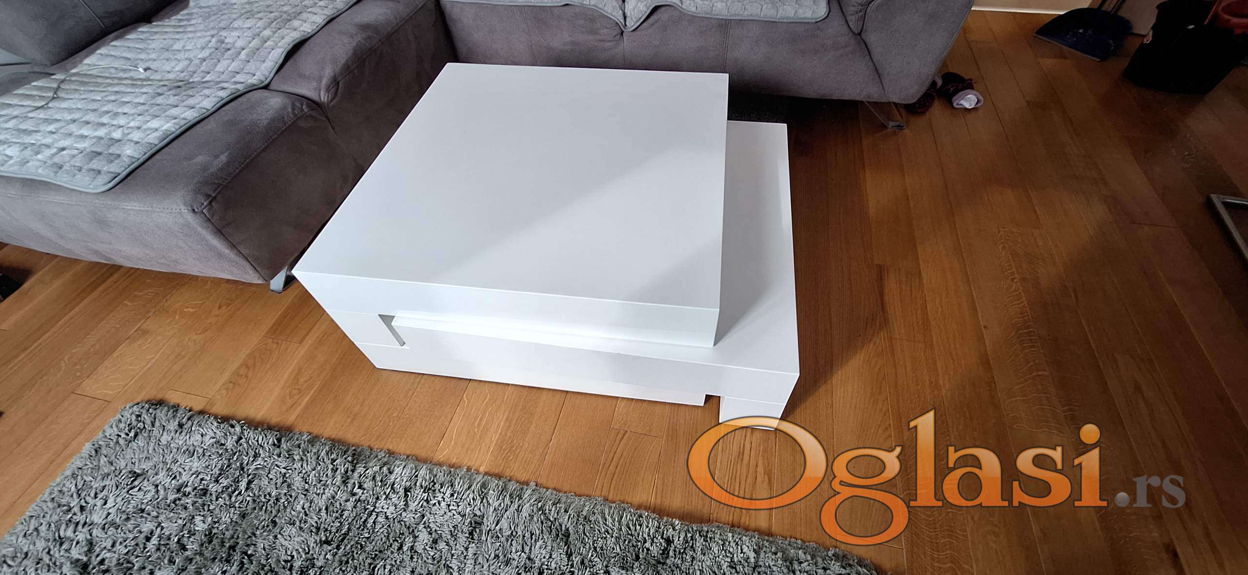 Na prodaju klub sto maxx visoki sjaj beli, dimenzije kada je zatvoren ŠxDxV=80x80x39, kada je otvoren ŠxDxV=150x80x39. Mogućnost prevoza na kućnu adresu. Tel. 062/846-20-49, 0665399135