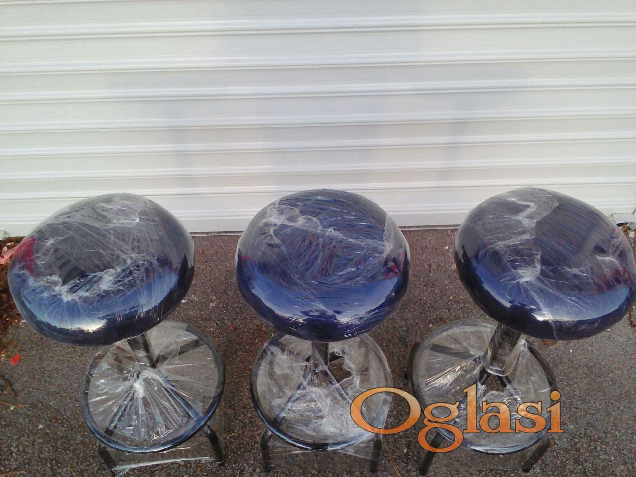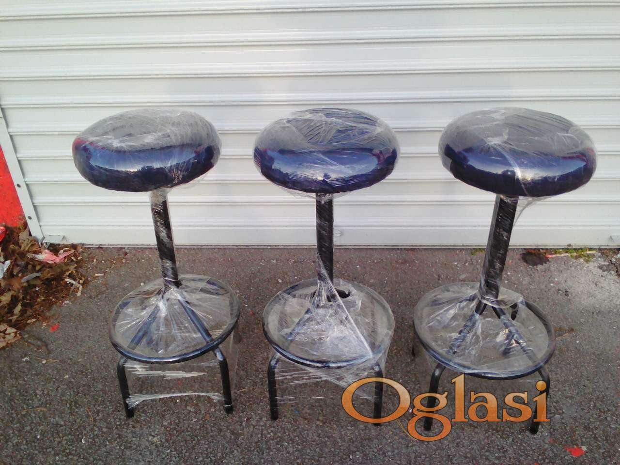 MASIVNE barske stolice domaće proizvodnje, visina sedišta 85 cm, prečnik 35, izuzetno jake i stabilne, obnovljena - tapacirana sedišta (nakon toga NEKORIŠĆENE).