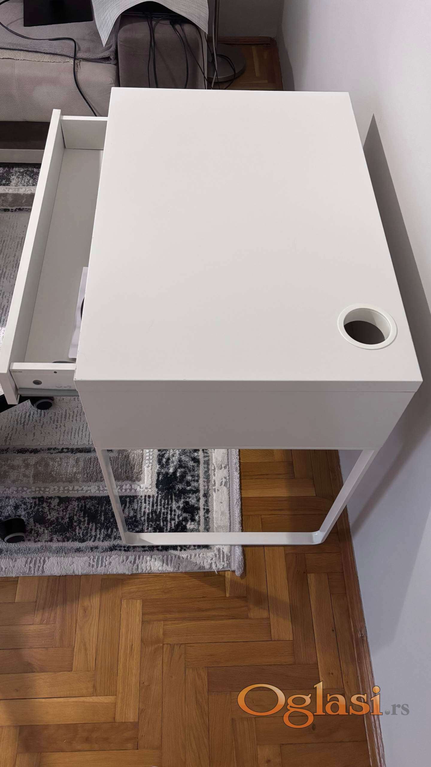 Prodajem polovni radni sto - neostecen, zajedno sa kancelarijskom stolicom, kupljeni u Ikei. Ne zauzima puno prostora u domu.Moze se licno pogledati i preuzeti, ili slanjem putem poste.