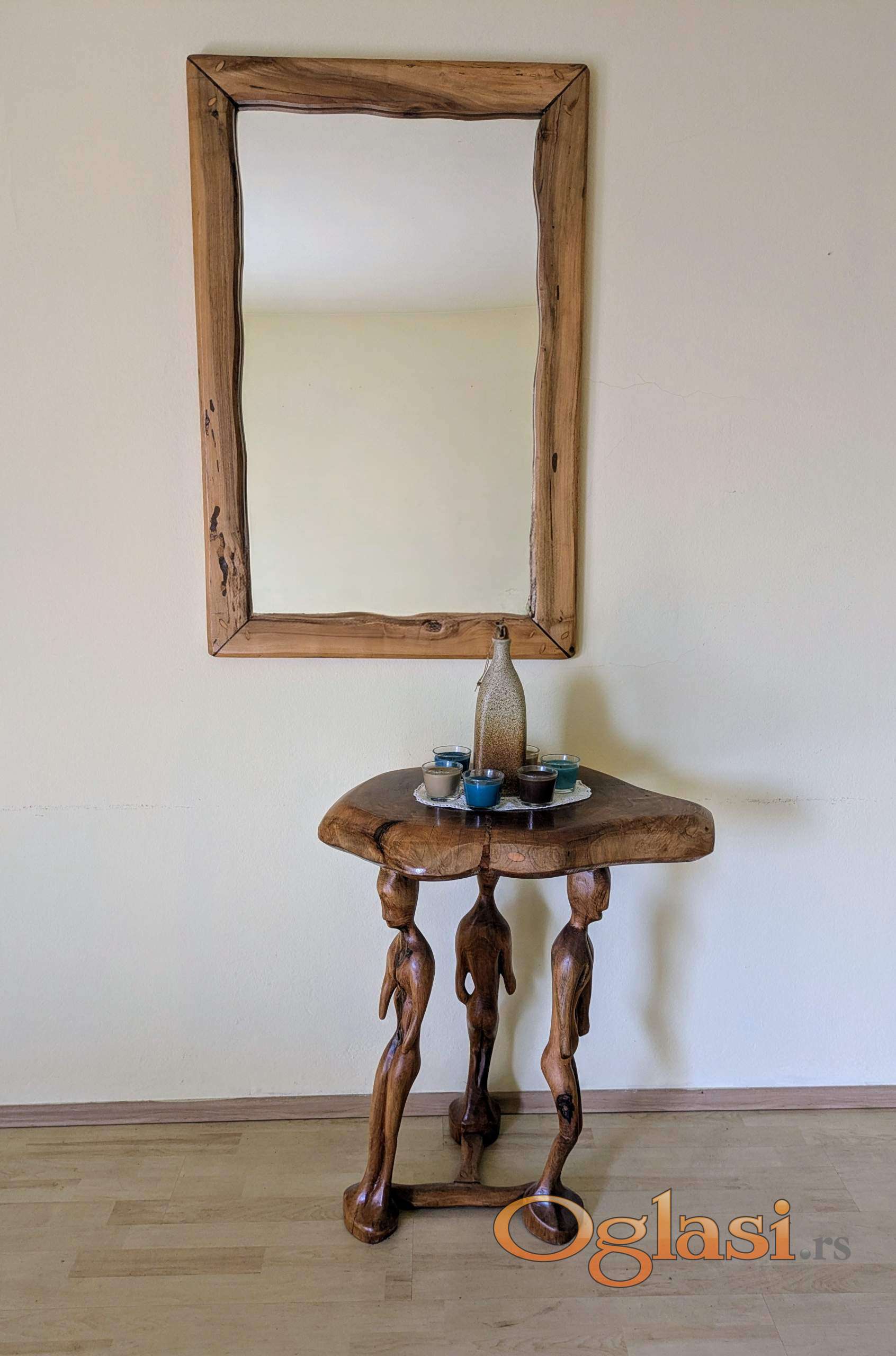 - unikatni stočić sa nogama u obliku stilizovanih figura visina 80 cm x 65 x 50 cm