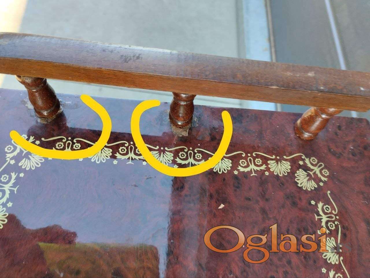 Na gornjoj polici postoje manji tragovi vremena – vidljivo na fotografijama, ne utiču na funkcionalnost.