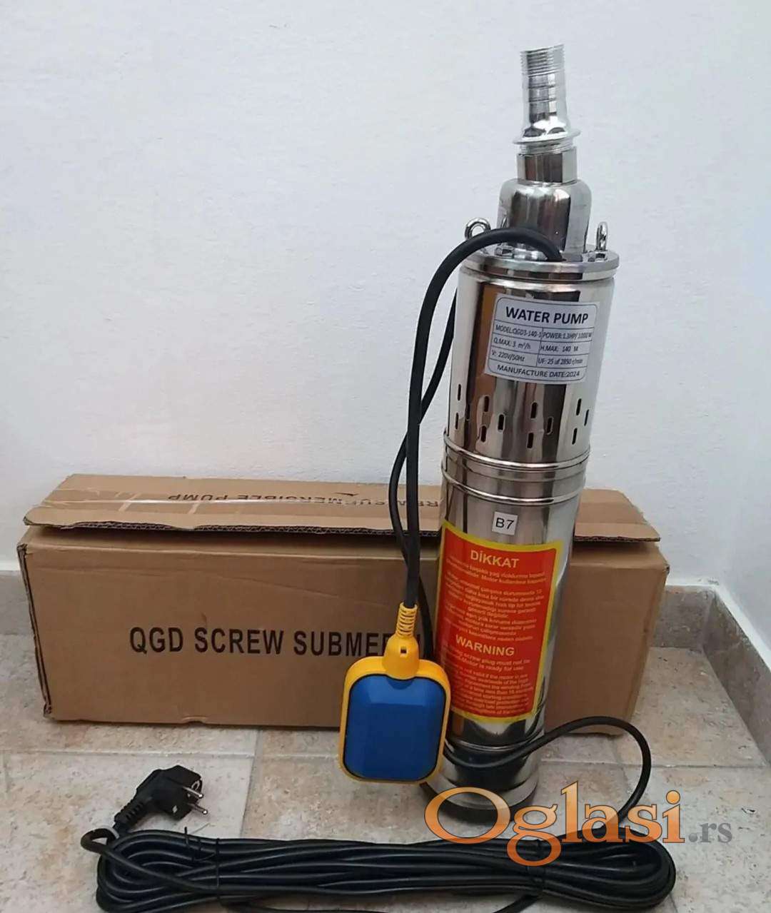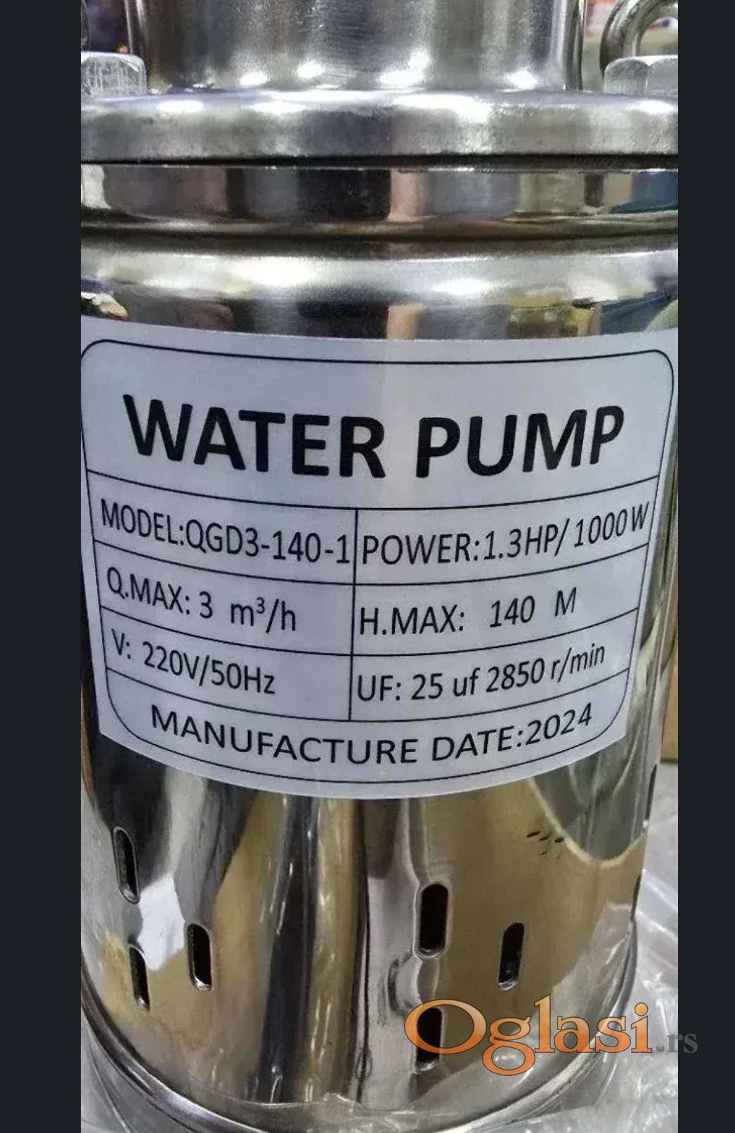 Potopna pumpa snage 1KW sa plovkom i kabelom od 10m je namenjena za bunarsku, rečnu, jezersku, kišnicu dubine do 50m i izbacivanjem do 120m.