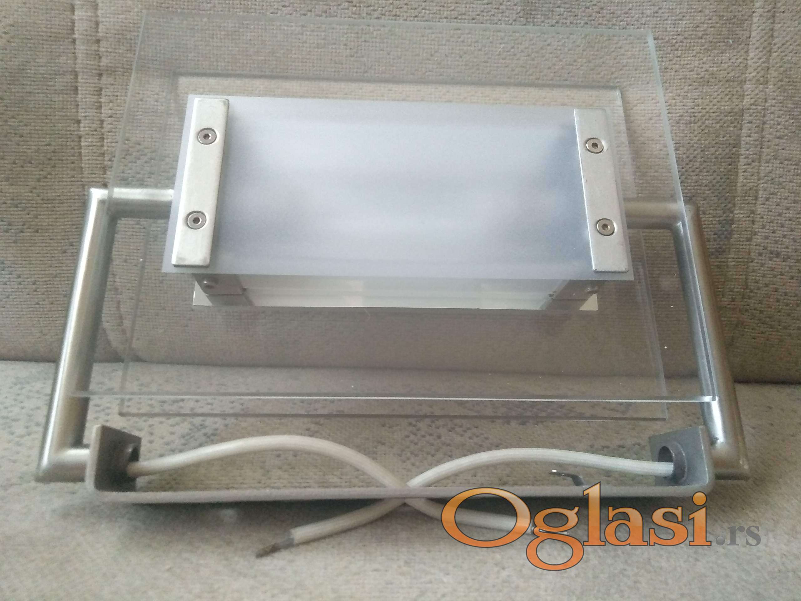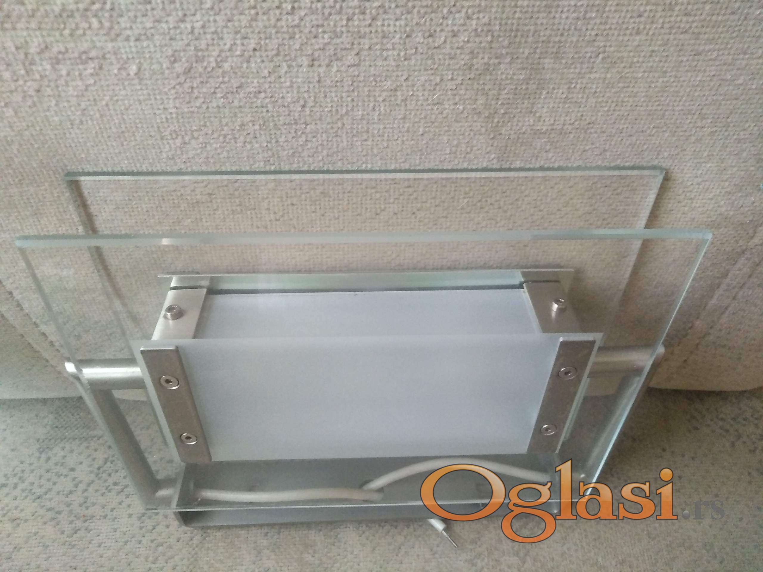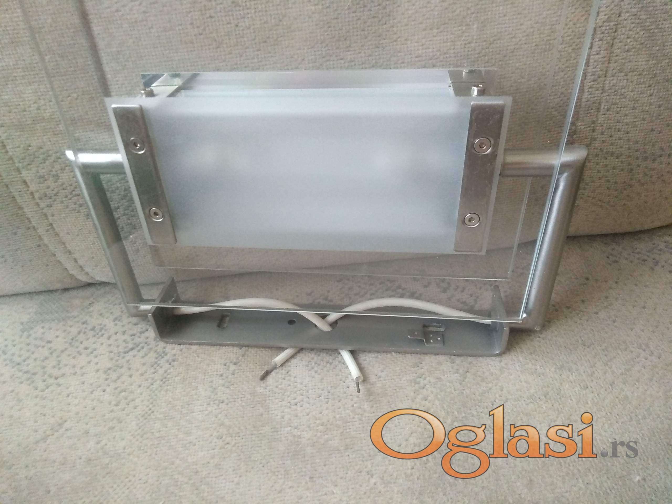 kao nova ispravna jaka lampa srebrne boje sa belim sa debelim kvalitetnim staklom. montira se na zid za moderne enterijere.