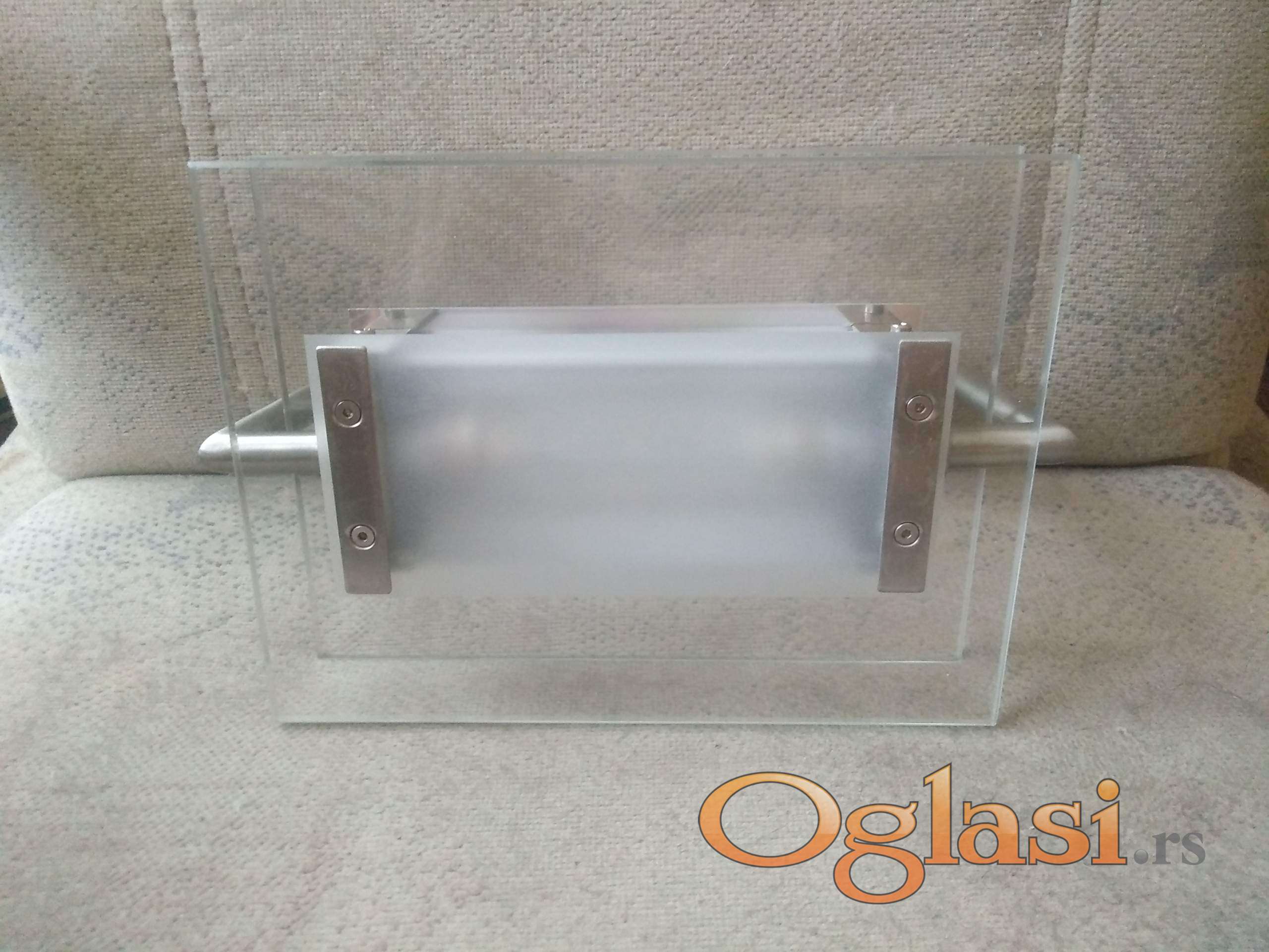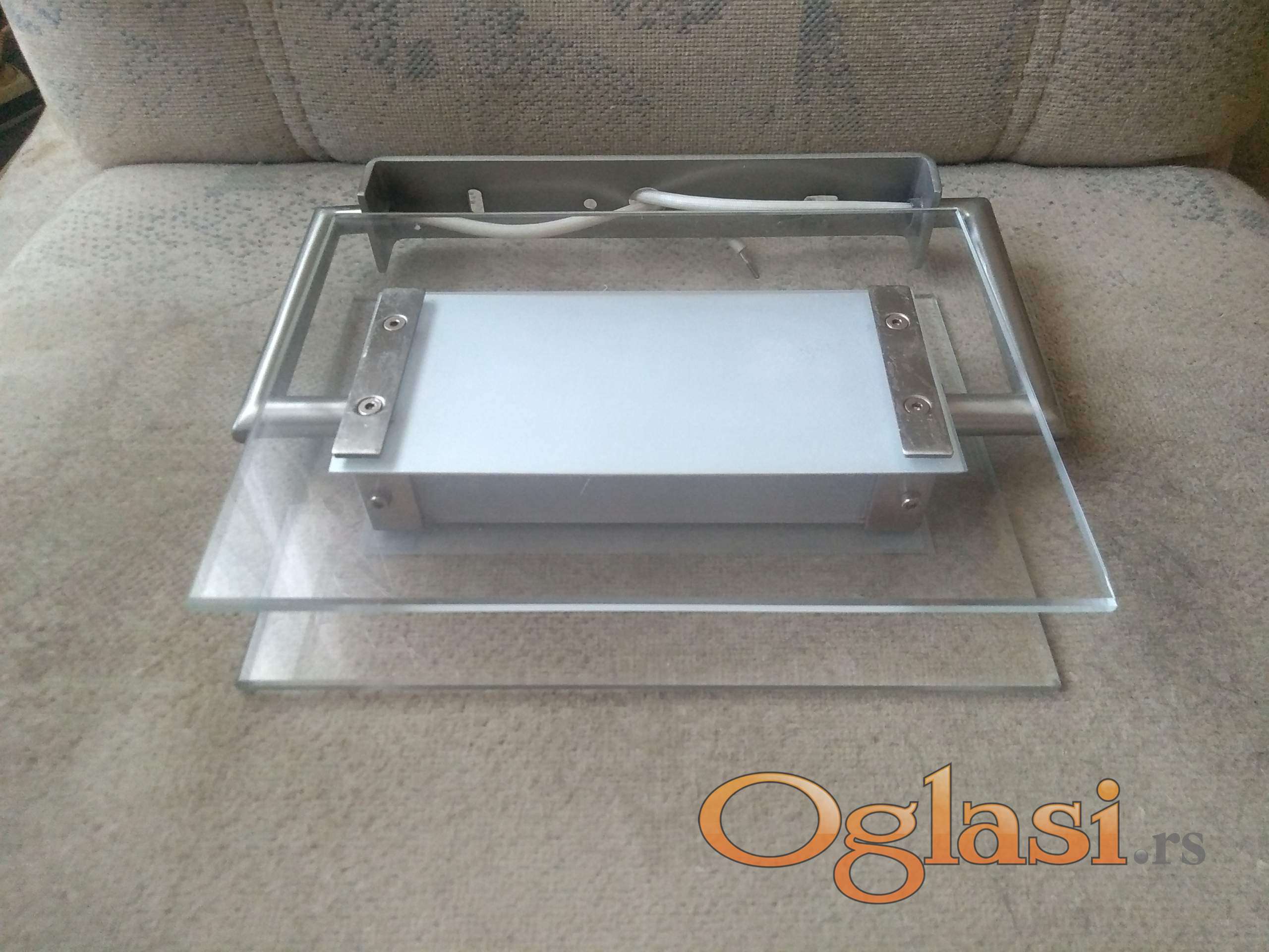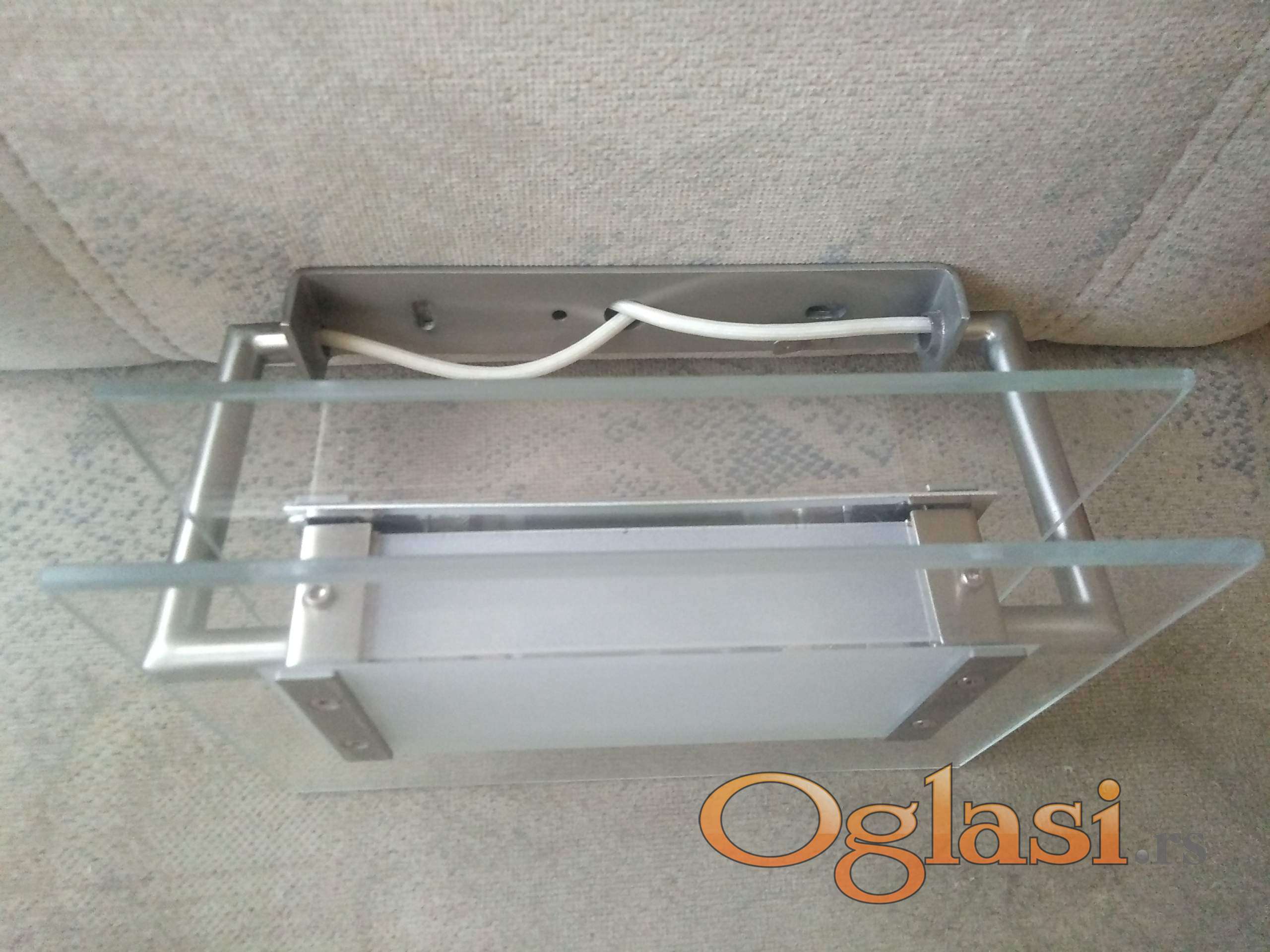 kao nova ispravna jaka lampa srebrne boje sa belim sa debelim kvalitetnim staklom. montira se na zid za moderne enterijere.