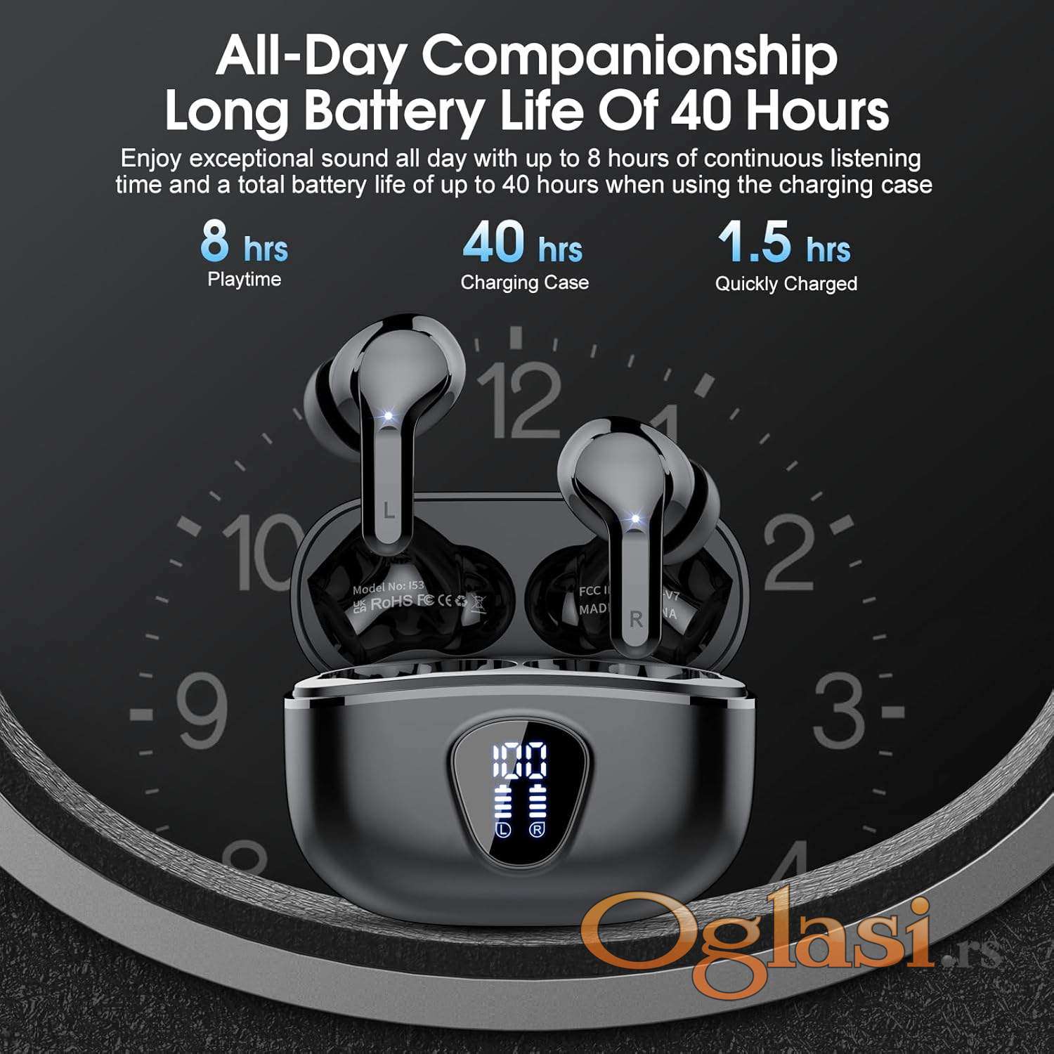 • LED digitalni displej na Case-u jasno prikazuje preostalu bateriju slušalica i Case-a