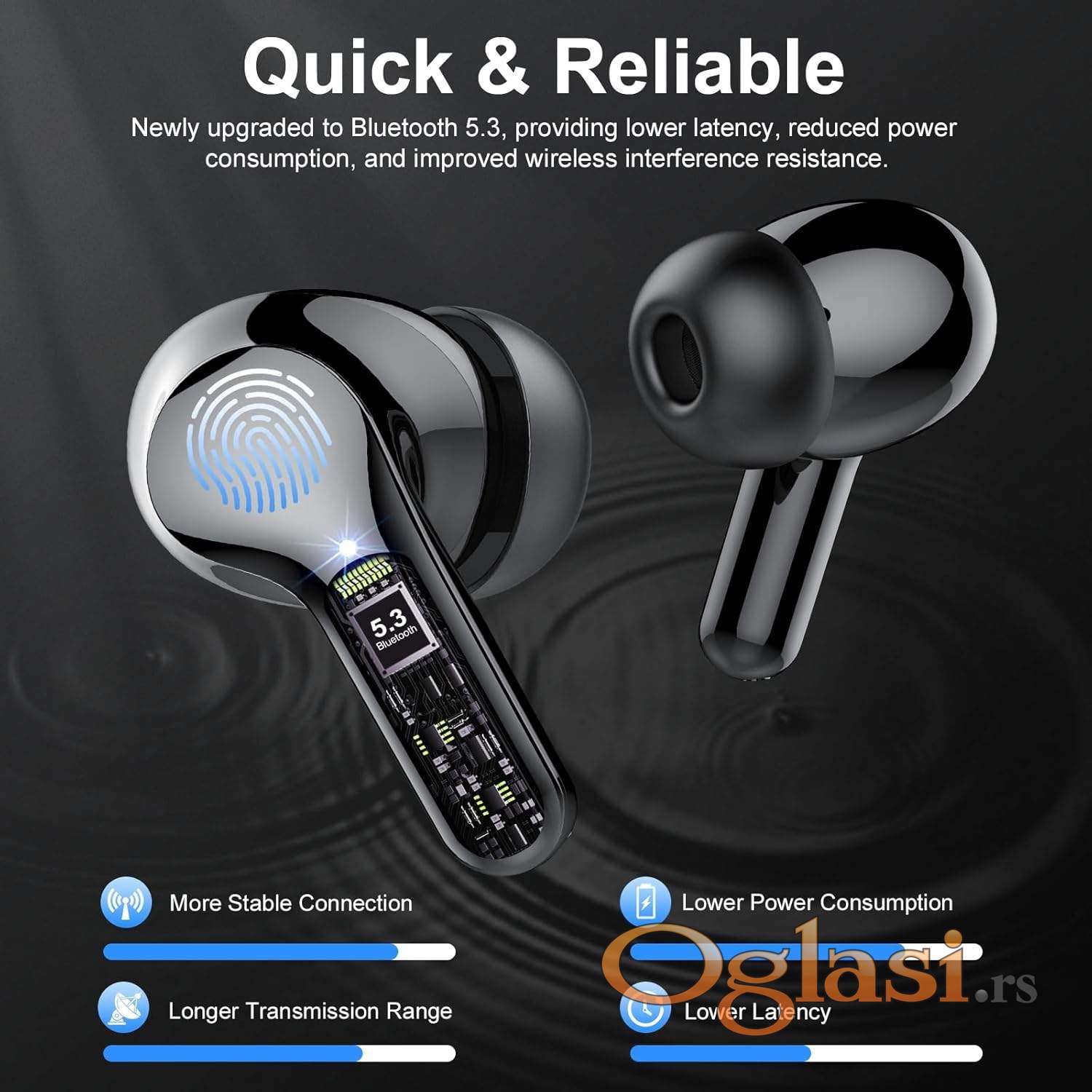• Bluetooth 5.3 / 5.4 tehnologija za stabilnu i brzu vezu bez prekidaniske latencije i manju potrošenju baterije.