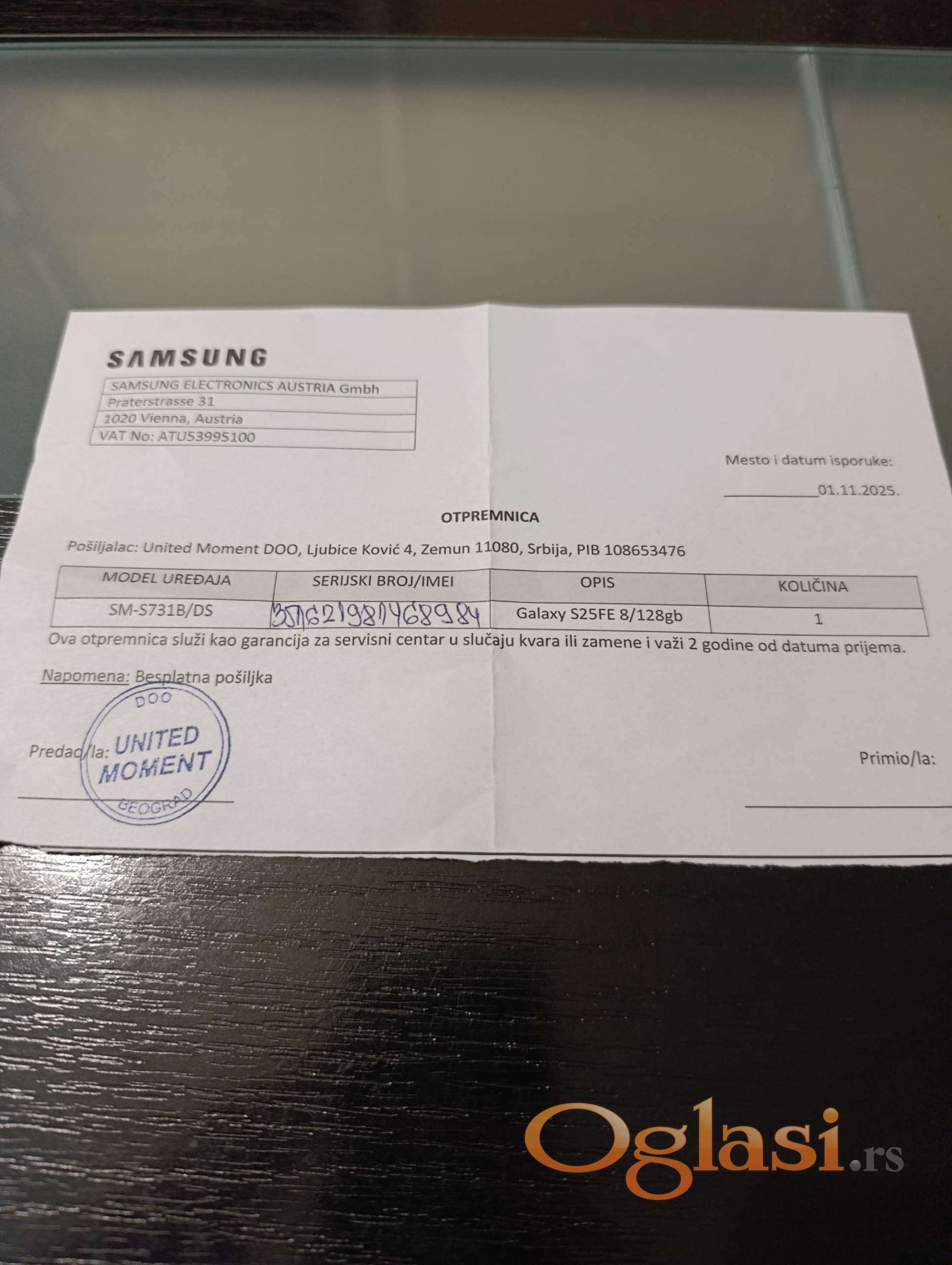 Uz njega dobijate garanciju 2 godine garancije.