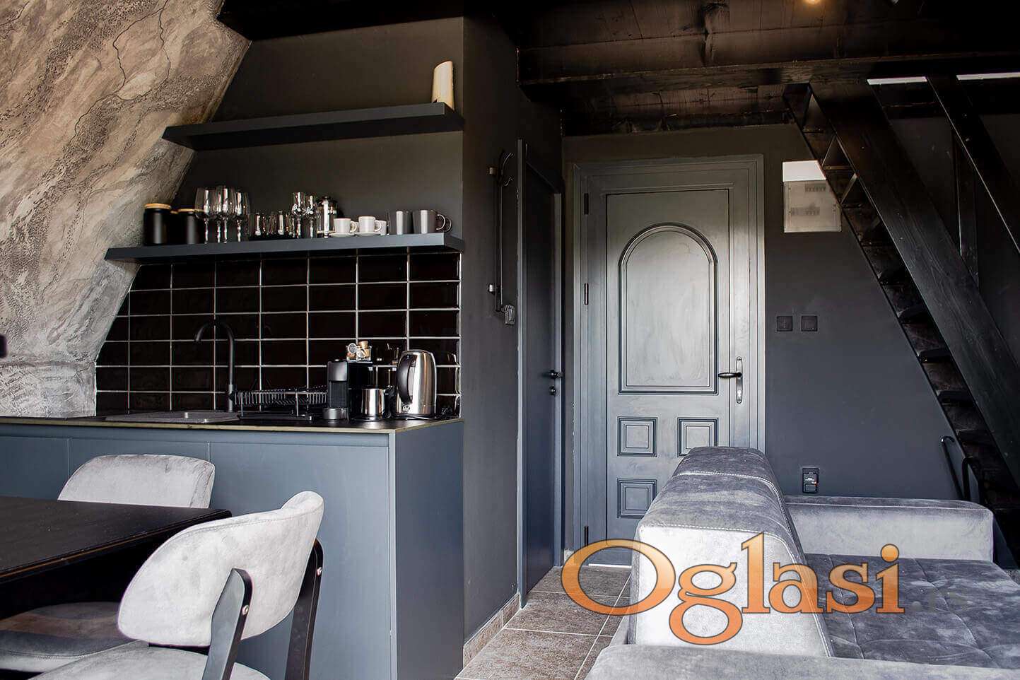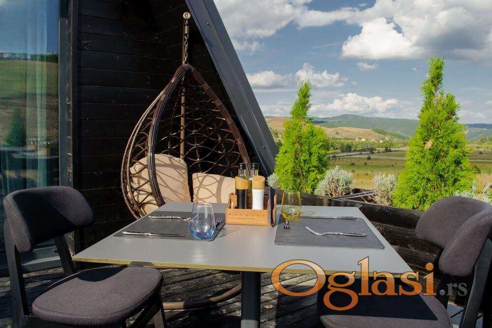 Kompleks se sastoji iz 4 kućice. Svaka kućica može da primi do 5 osoba (3+2) i sadrži dve spavaće sobe sa francuskim i singl ležajem, kao i trosedom u dnevnoj sobi pogodnim za još 2 osobe. Kuća poseduje i televizor, bežični internet, mini bar i kuhinju. Gostima su na raspolaganju hidromasažna kada, privatna sauna, Prija kozmetika, peškiri i bade mantili, dok toplinu prostora upotpunjuje peć na pelet sa vidljivim plamenom. Terasa sa platformom i ležaljkama pruža savršeno mesto za odmor na svežem vazduhu, uz mogućnost room servisa.