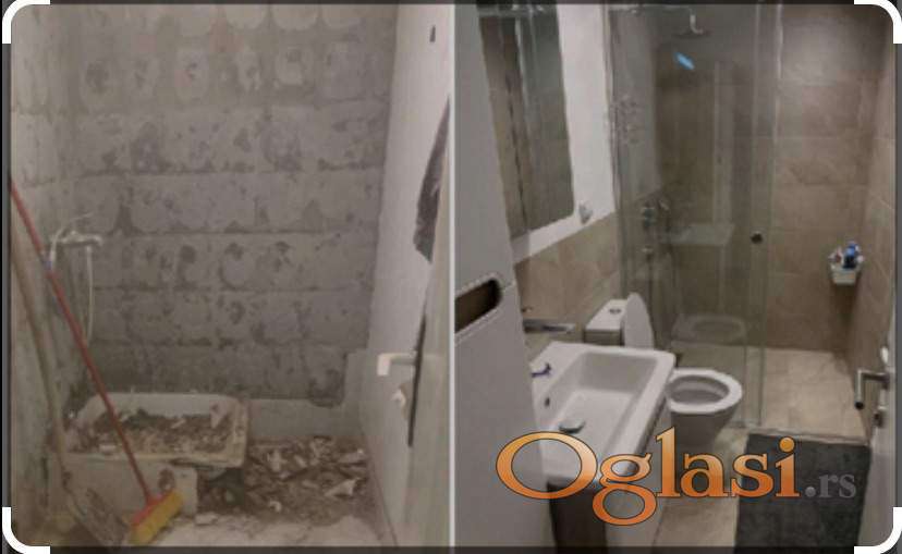 Kompletna adaptacija kupatila, rušenje stare keramike, demontaža stare sanitarije (skidanje stare wc šolje, lavaboa, iznošenje kade, demontaža starih metalnih cevi), iznošenje šuta