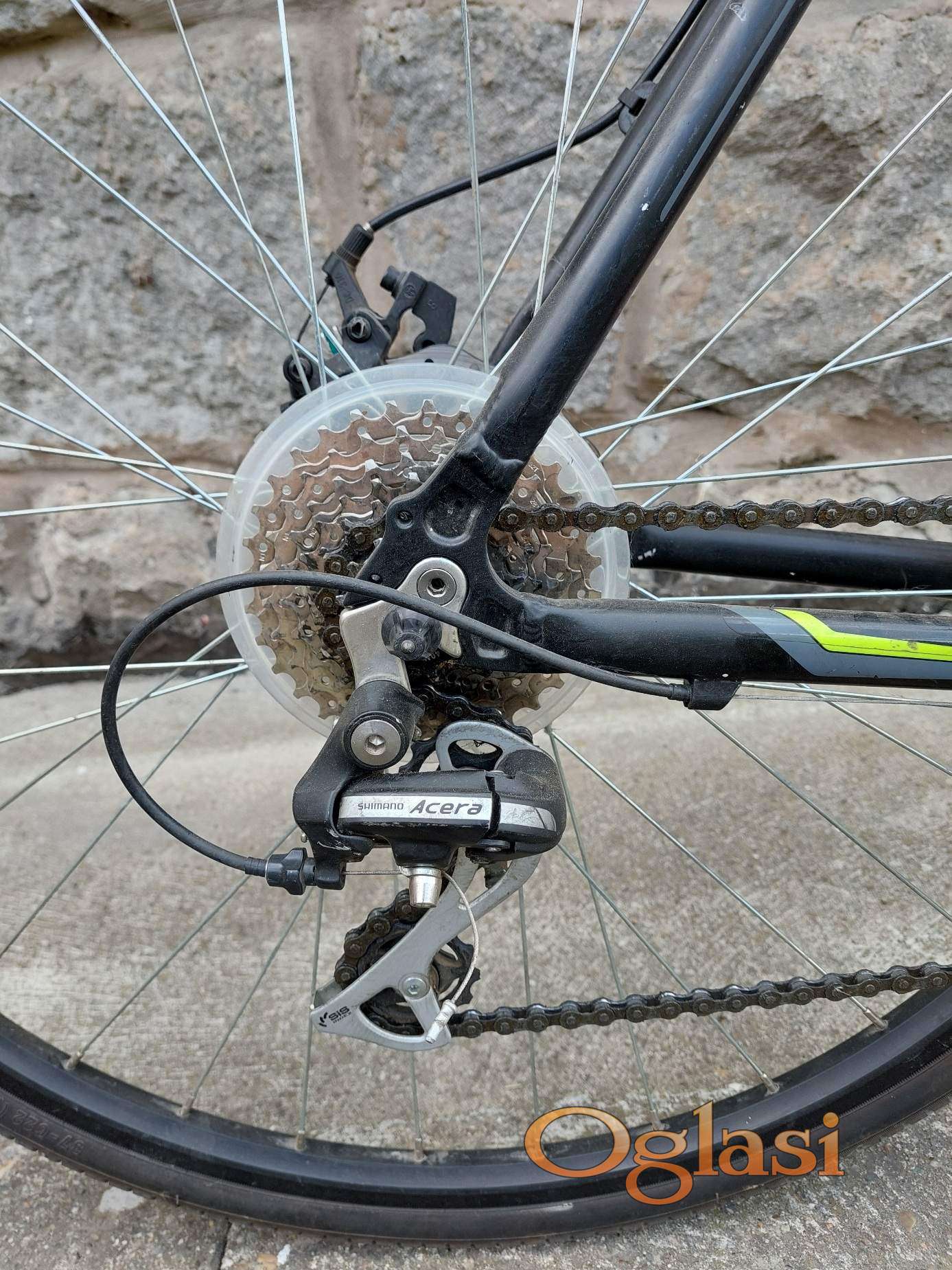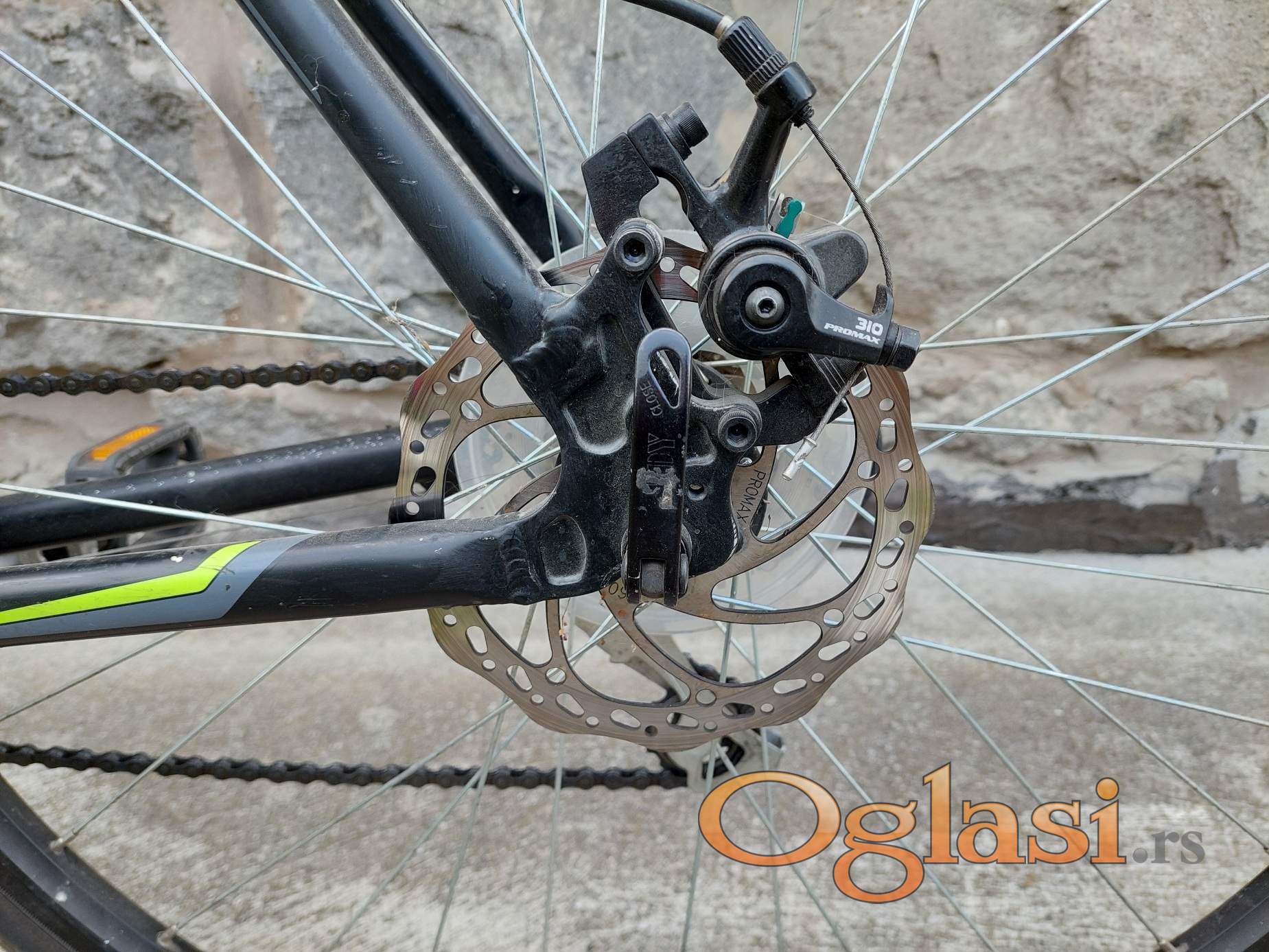 Bicikl je u odlicnom stanju, zamenjen je sic, na brzinomeru treba da se stavi baterija, sve ostalo je ispravno. Od dodatne opreme poseduje prednje amortizere, drzac za bocu i zvonce.